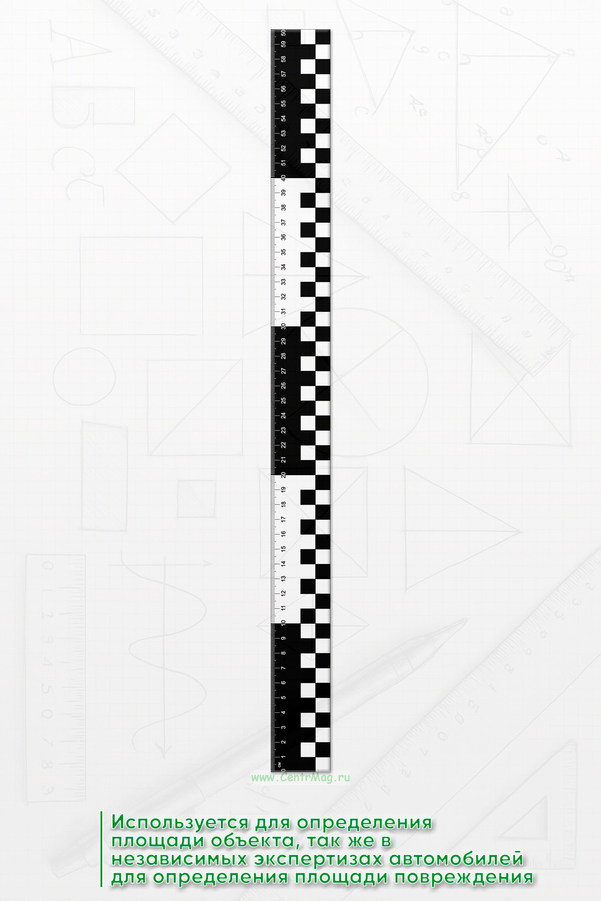 Линейка используется для определения площади объекта, так же в независимых экспертизах автомобилей для определения площади повреждения. Хорошие магнитные свойства позволяют ей удерживаться на металлических поверхностях в любом положении