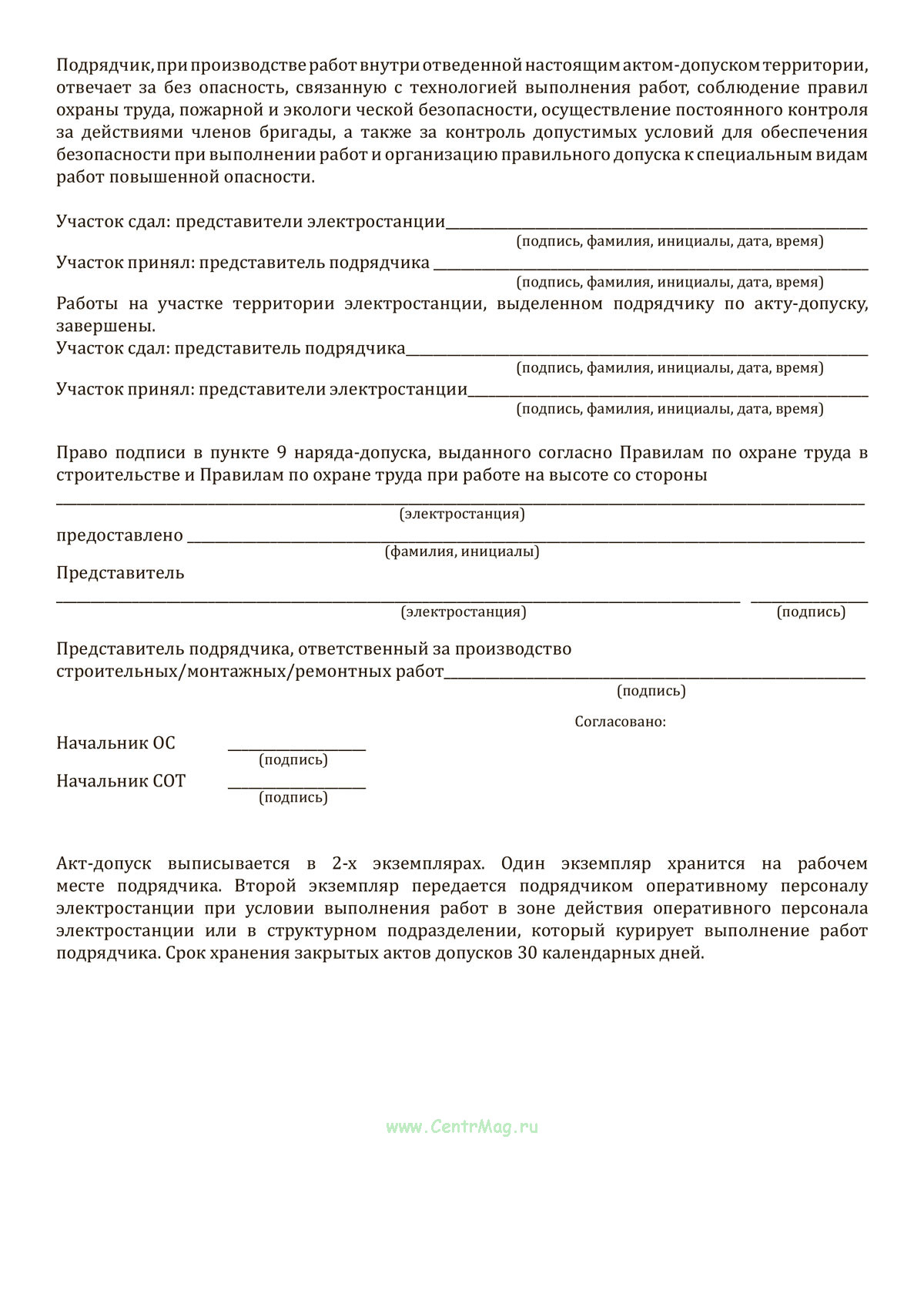 Акт-допуск к работам, выполняемым подрядными организациями продается только как чистый незаполненный бланк, без печатей и подписей соответствует 149-ФЗ от 27.07.2006