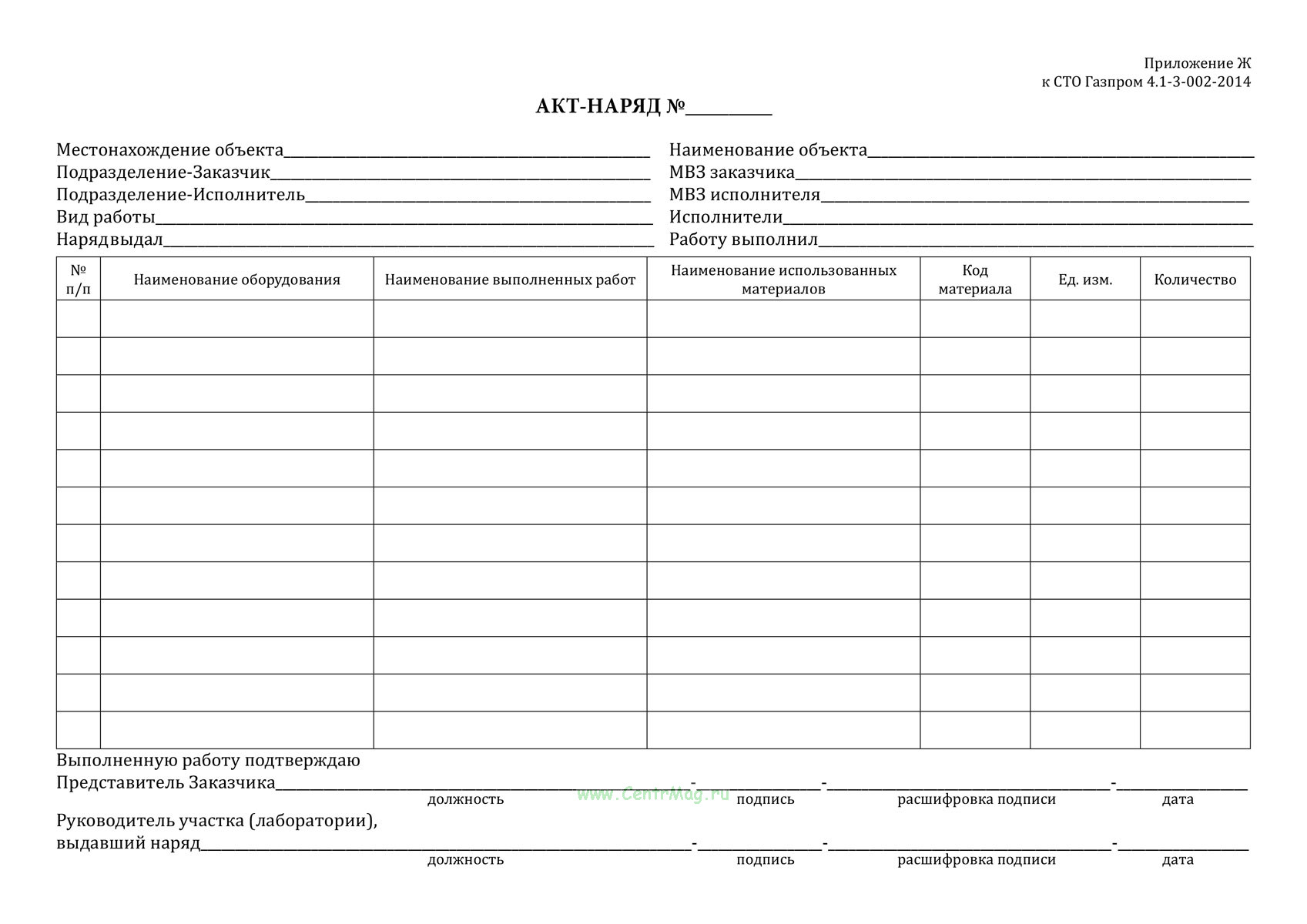 Акт-наряд (СТО Газпром 4.1-3-002-2014)