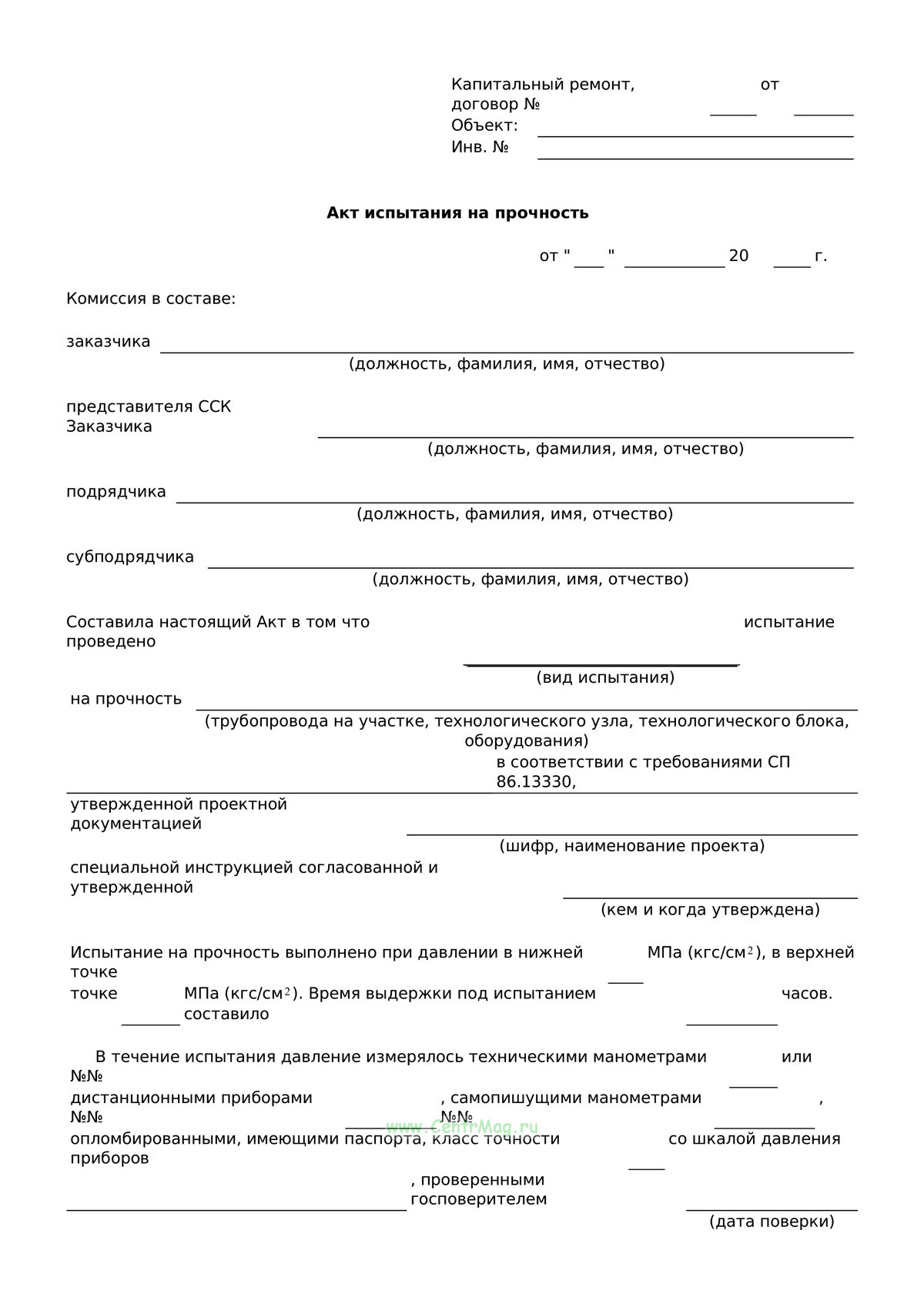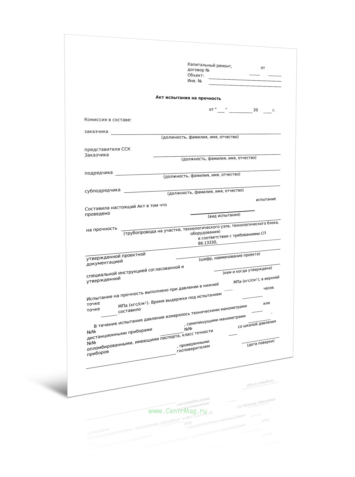 Акт испытания на прочность (Форма Д.63) продается только как чистый незаполненный бланк, без печатей и подписей соответствует 149-ФЗ от 27.07.2006