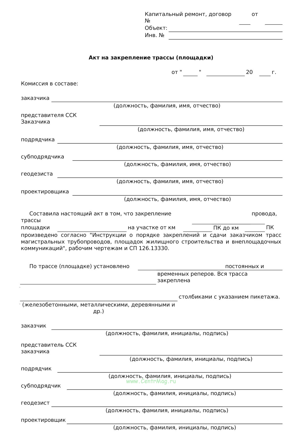 Акт на закрепление трассы (площадки) (Форма Д.61)
