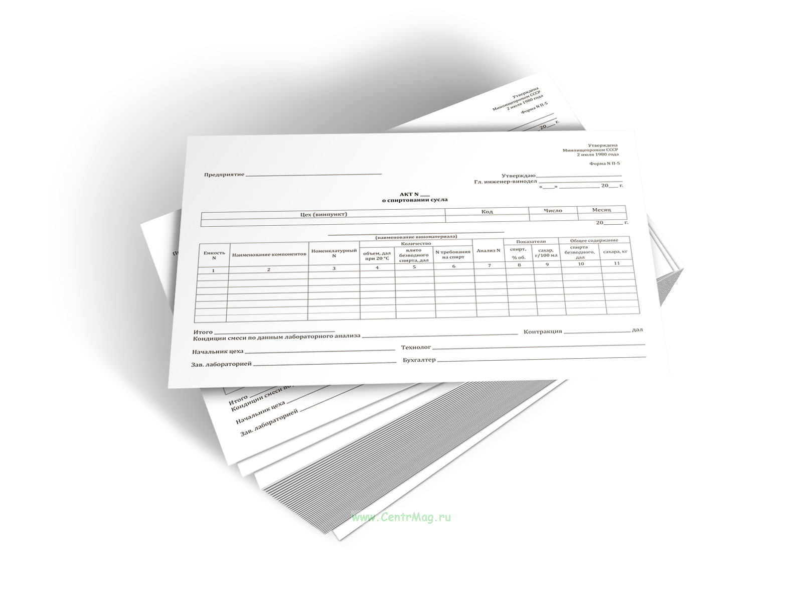 Акт о спиртовании сусла (Форма N П-5) продается только как чистый незаполненный бланк, без печатей и подписей соответствует 149-ФЗ от 27.07.2006