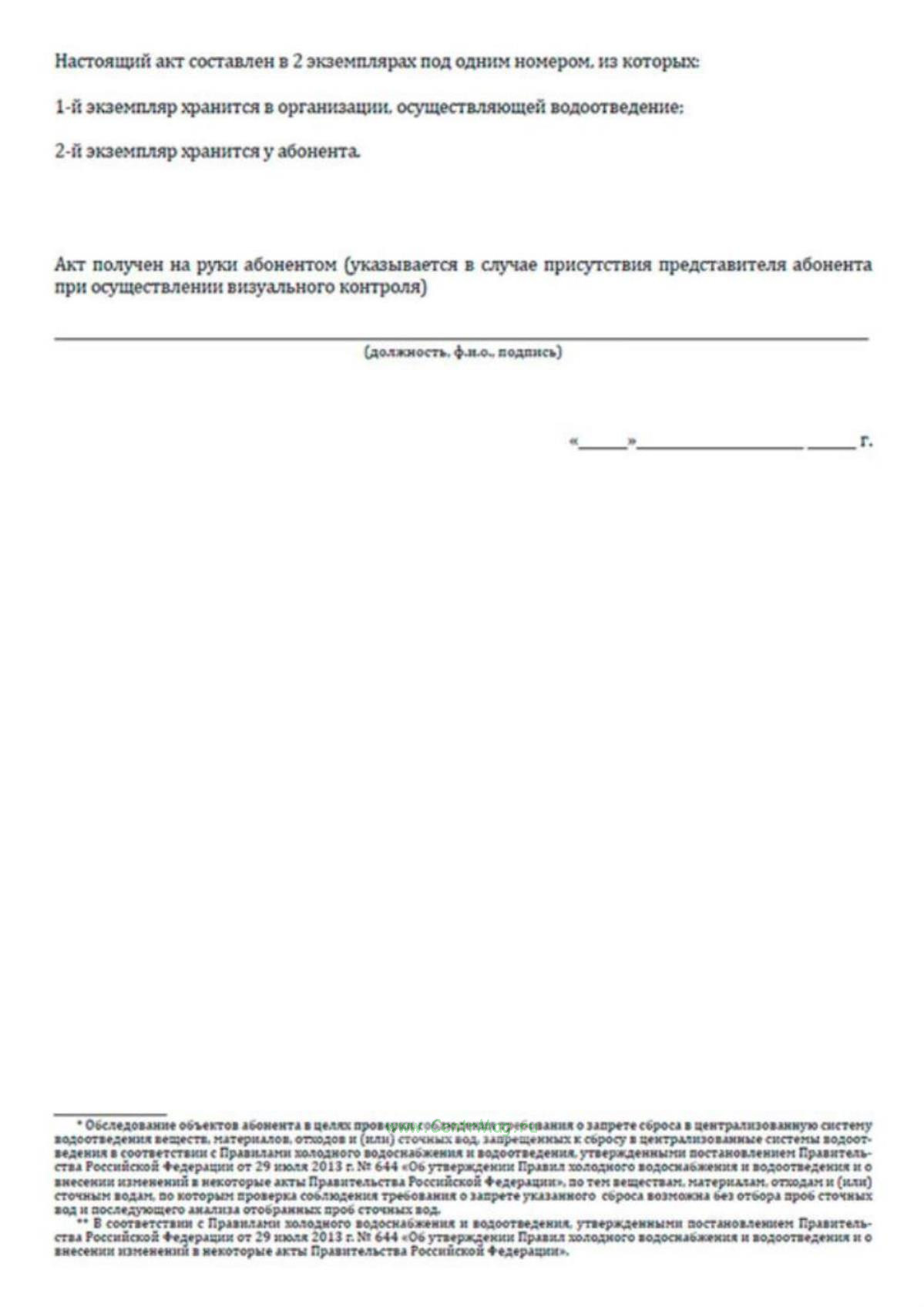 Форма акта соответствует Приложению 2 к "Правилам осуществления контроля состава и свойств сточных вод"