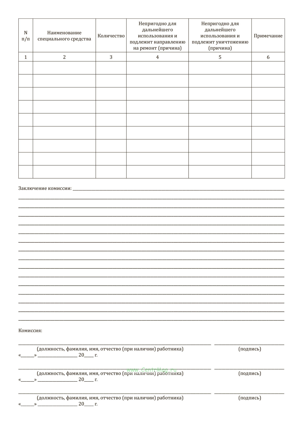 Акт определения пригодности для эксплуатации специальных средств предназначен для определения пригодности специальных средств при возникновении обстоятельств, влекущих невозможность дальнейшего их использования.