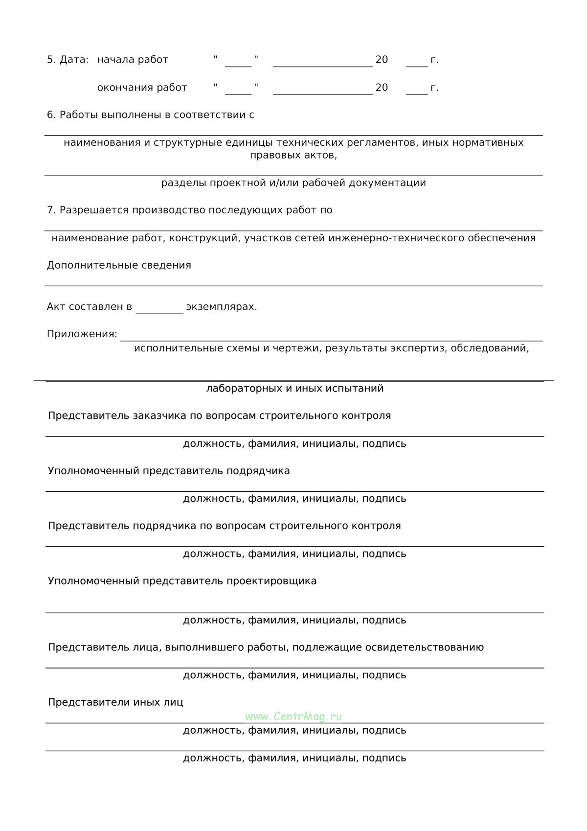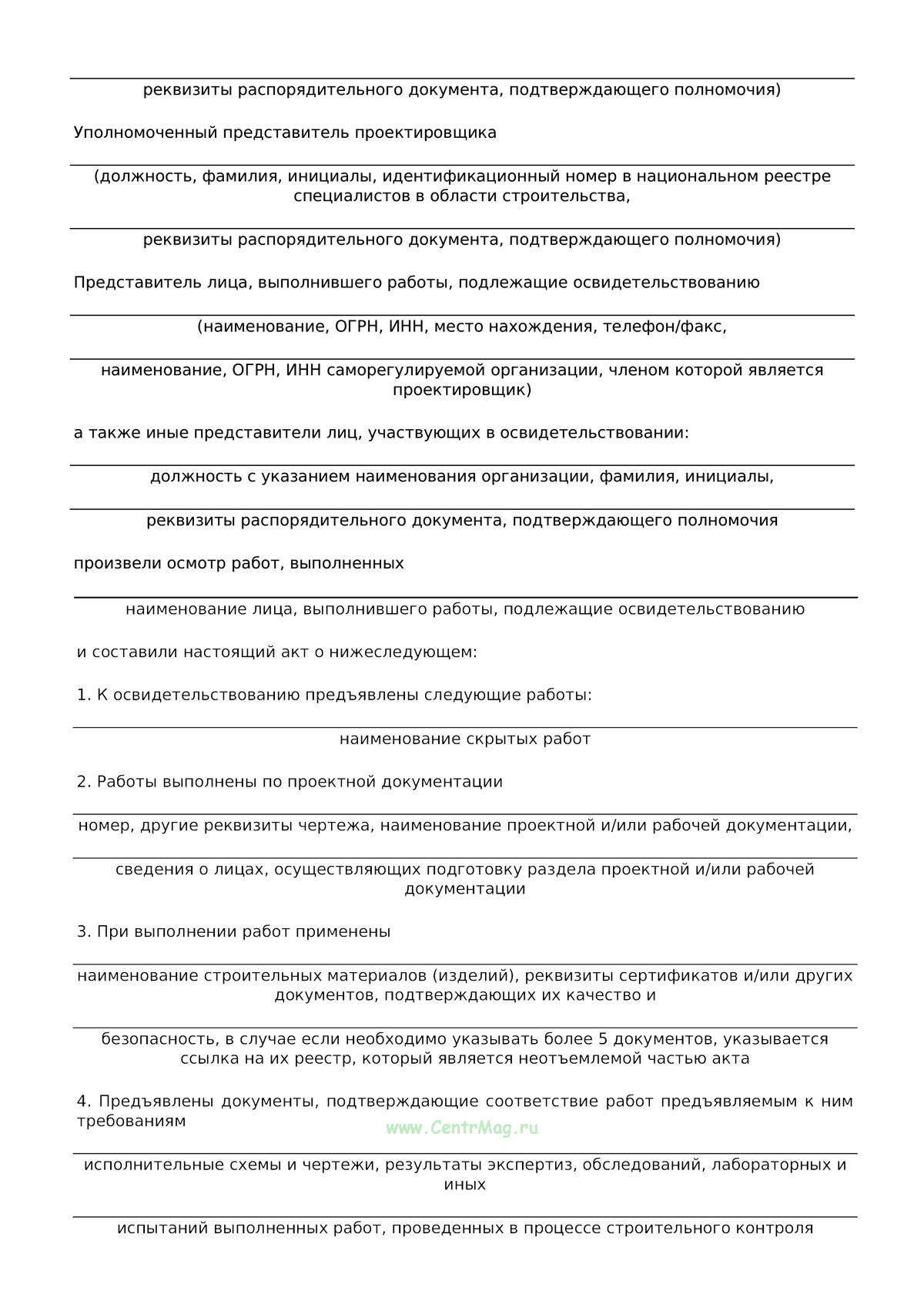 Акт освидетельствования скрытых работ (Форма Д.8) продается только как чистый незаполненный бланк, без печатей и подписей соответствует 149-ФЗ от 27.07.2006