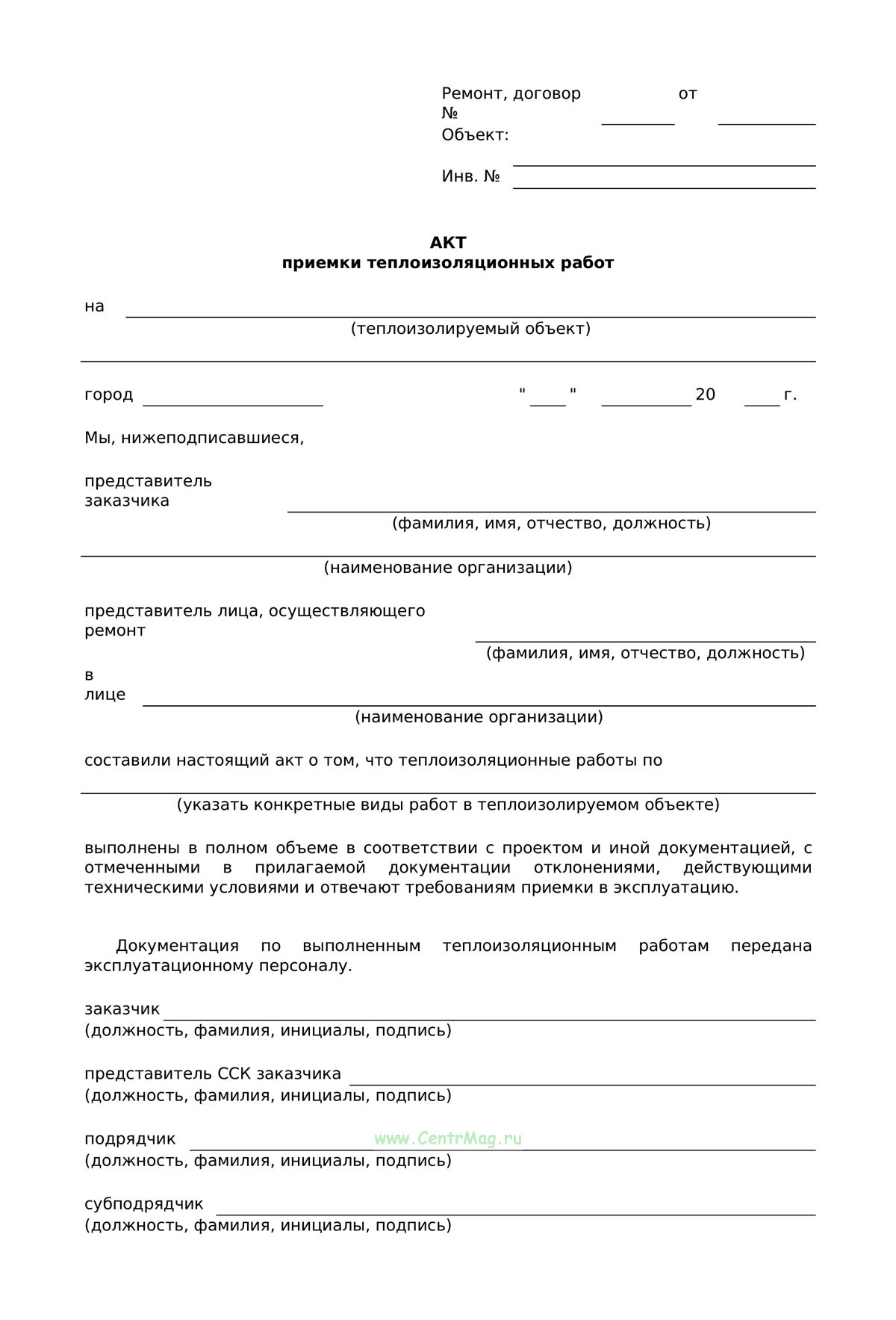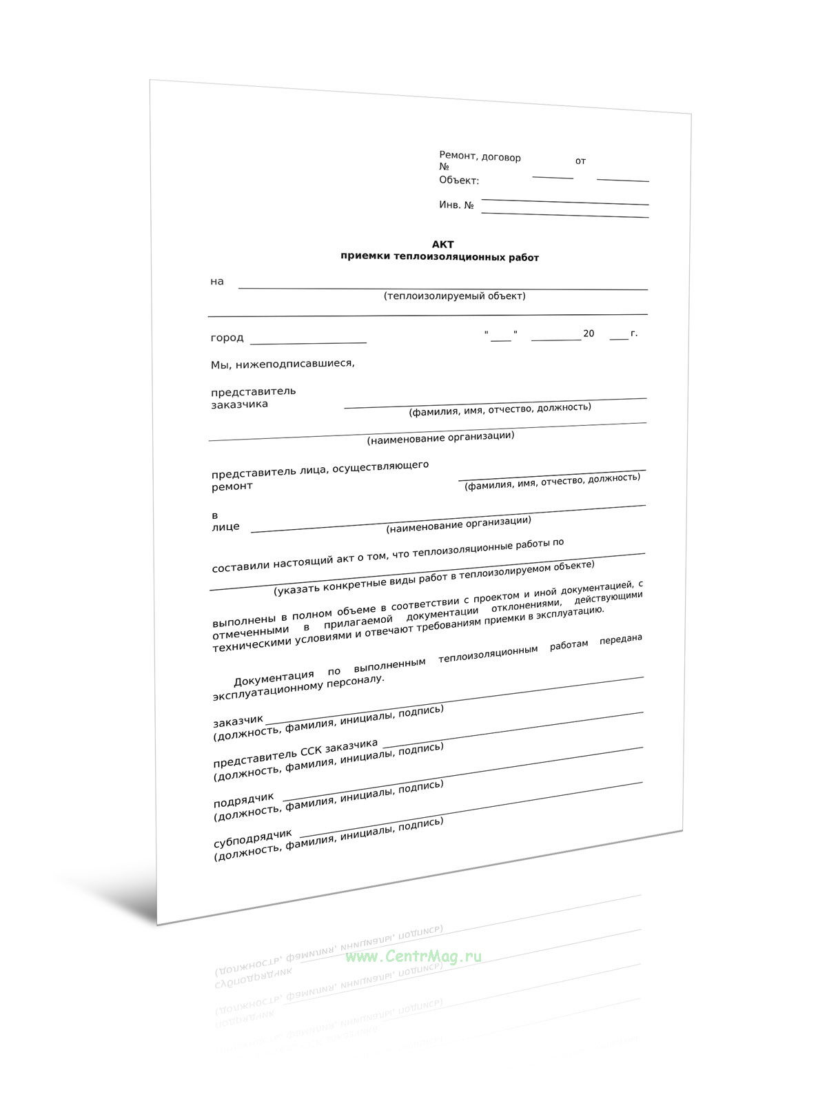 Акт приемки теплоизоляционных работ (Форма Д.84) продается только как чистый незаполненный бланк, без печатей и подписей соответствует 149-ФЗ от 27.07.2006