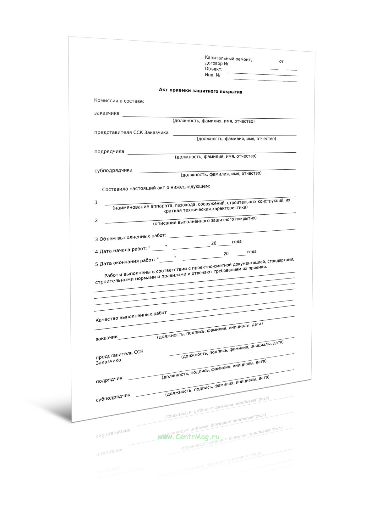 Акт приемки защитного покрытия (Форма Д.60) продается только как чистый незаполненный бланк, без печатей и подписей соответствует 149-ФЗ от 27.07.2006
