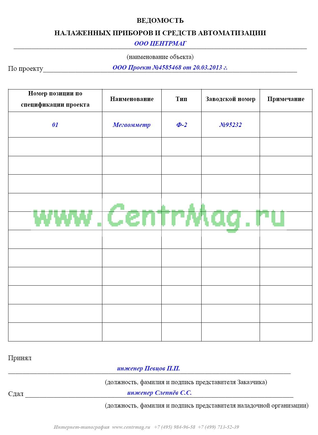 При наладке приборов и средств автоматизации составляют акт наладки (проверки) приборов и средств автоматизации, при сдаче-приемке пусконаладочных работ - акт сдачи-приемки пусконаладочных работ по вводу средств автоматизации, при передачи технических средств систем автоматизации в монтаж - акт передачи технических средств систем автоматизации в монтаж.