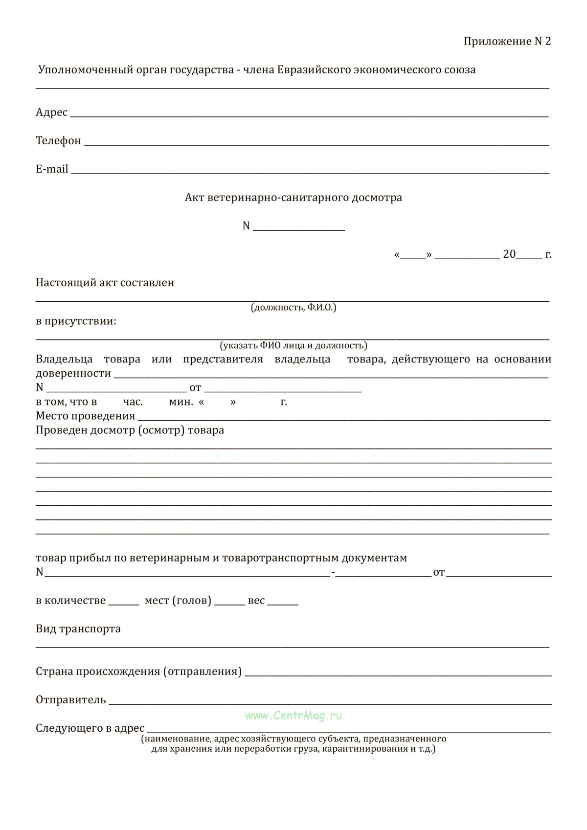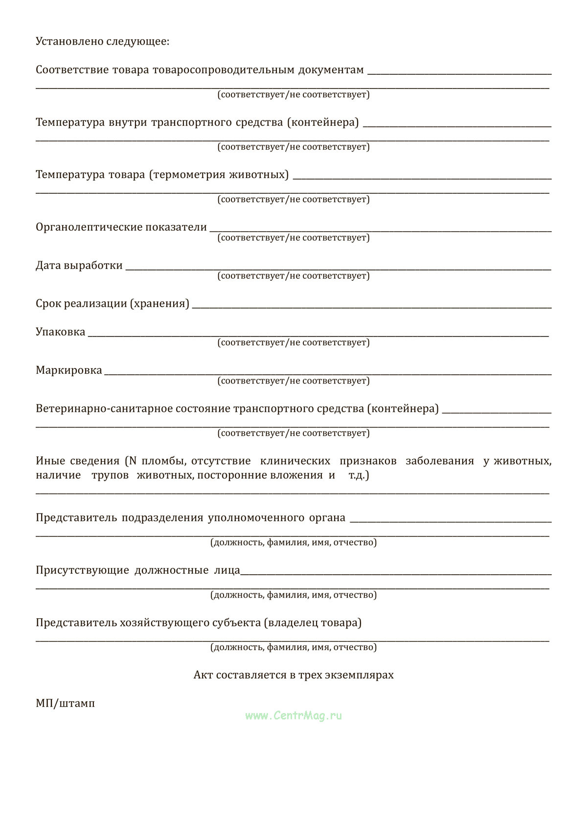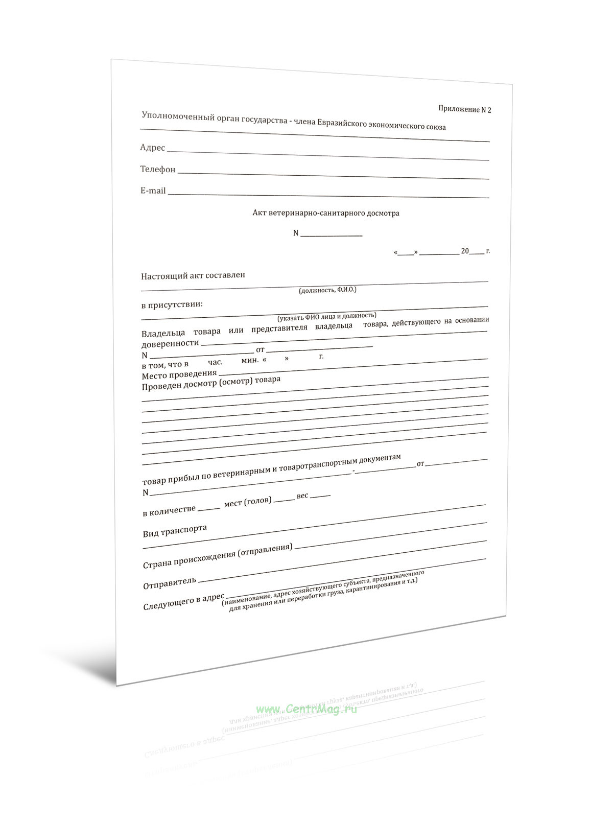 Акт ветеринарно-санитарного досмотра продается только как чистый незаполненный бланк, без печатей и подписей соответствует 149-ФЗ от 27.07.2006