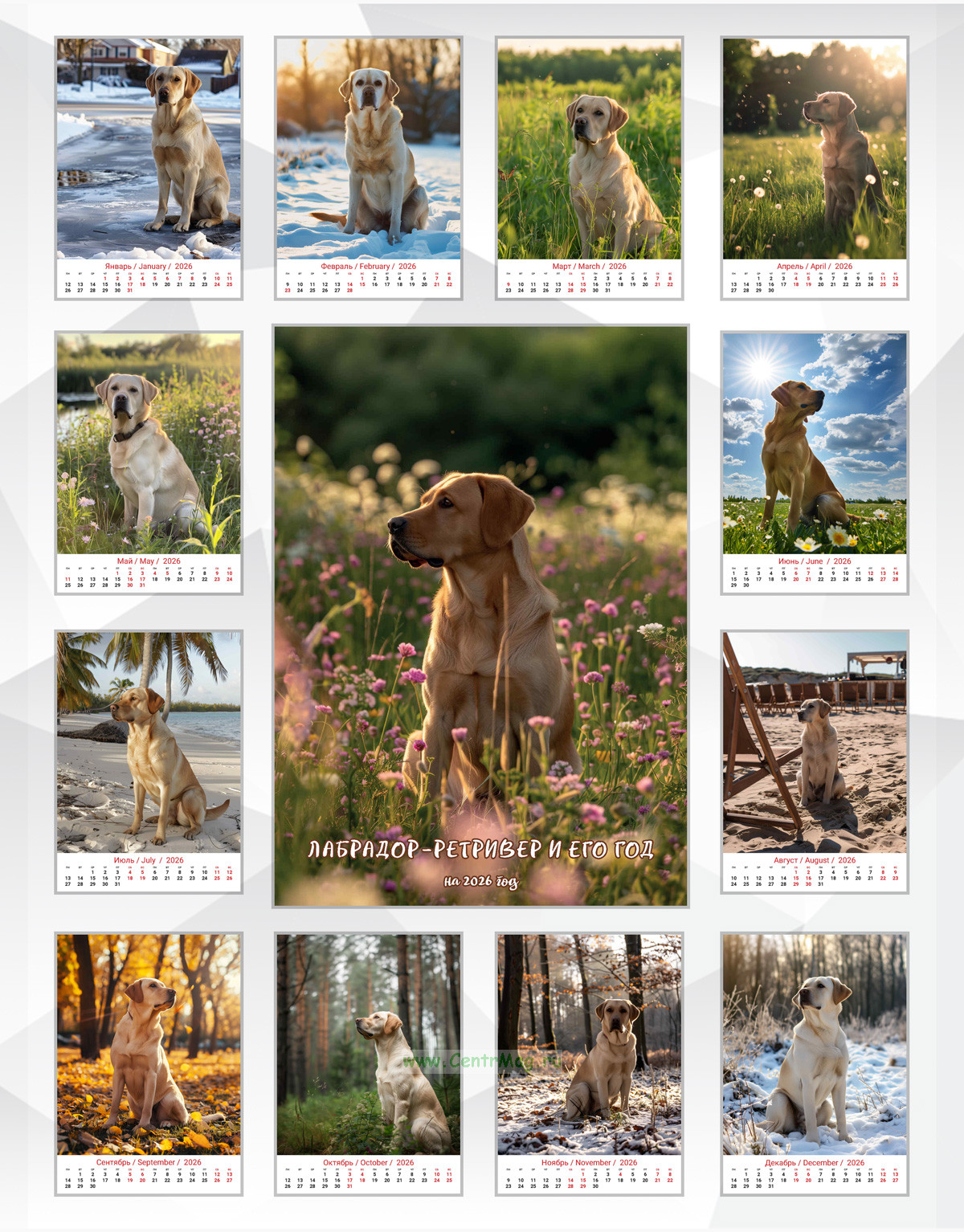 Настольный календарь-домик "Лабрадор-ретривер и его год" на 2026 год (280 руб.)