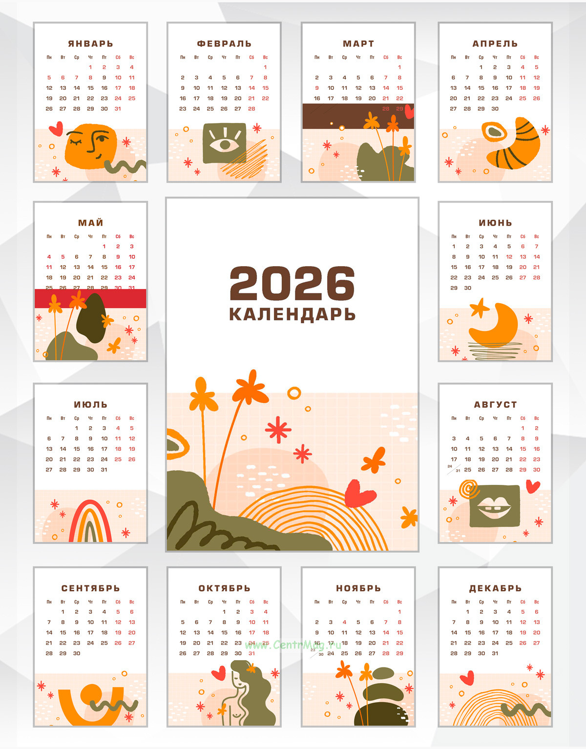 Календарь настенный, перекидной "Абстракция на летнюю тематику" на 2026 год