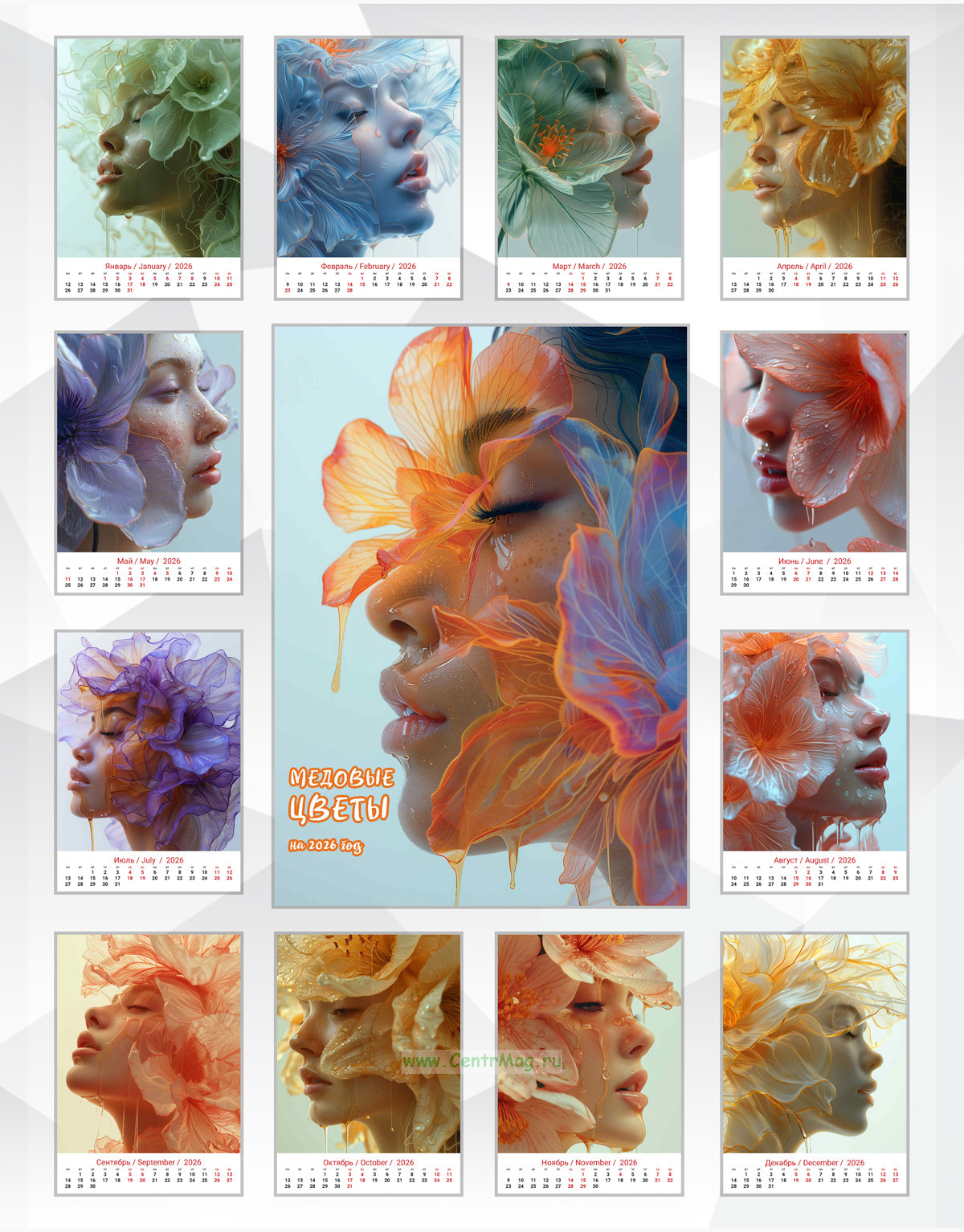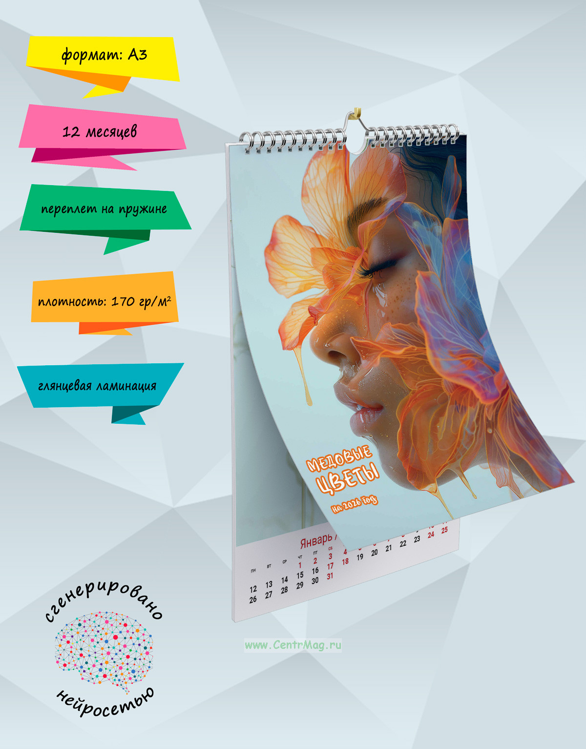 Календарь содержит изображения, сгенерированные с помощью нейросети, бьюти процедуры - медовое наслаждение, на прекрасных лицах девушек. Календарь будет отличным подарком для ваших родных, друзей, знакомых, коллег или даже для себя.