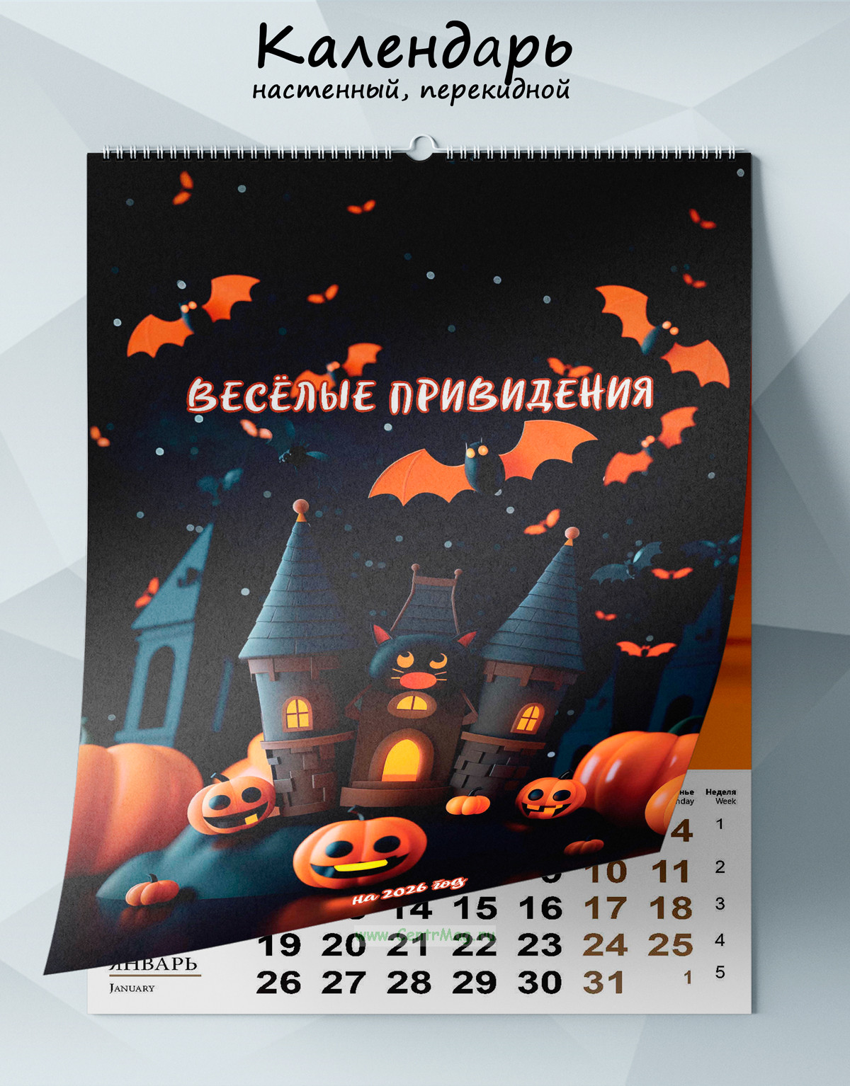 Календарь настенный, перекидной "Веселые привидения" на 2026 год