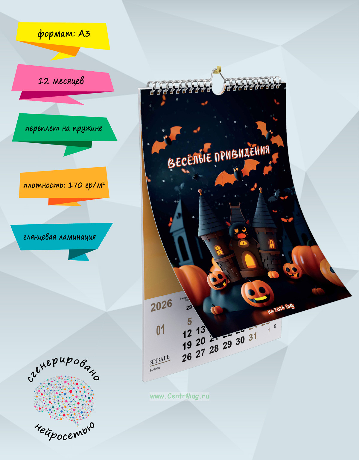 Календарь содержит изображения очаровательных и веселых приведений, сгенерированные с помощью нейросети. Календарь будет отличным подарком для ваших родных, друзей, знакомых, коллег или даже для себя.