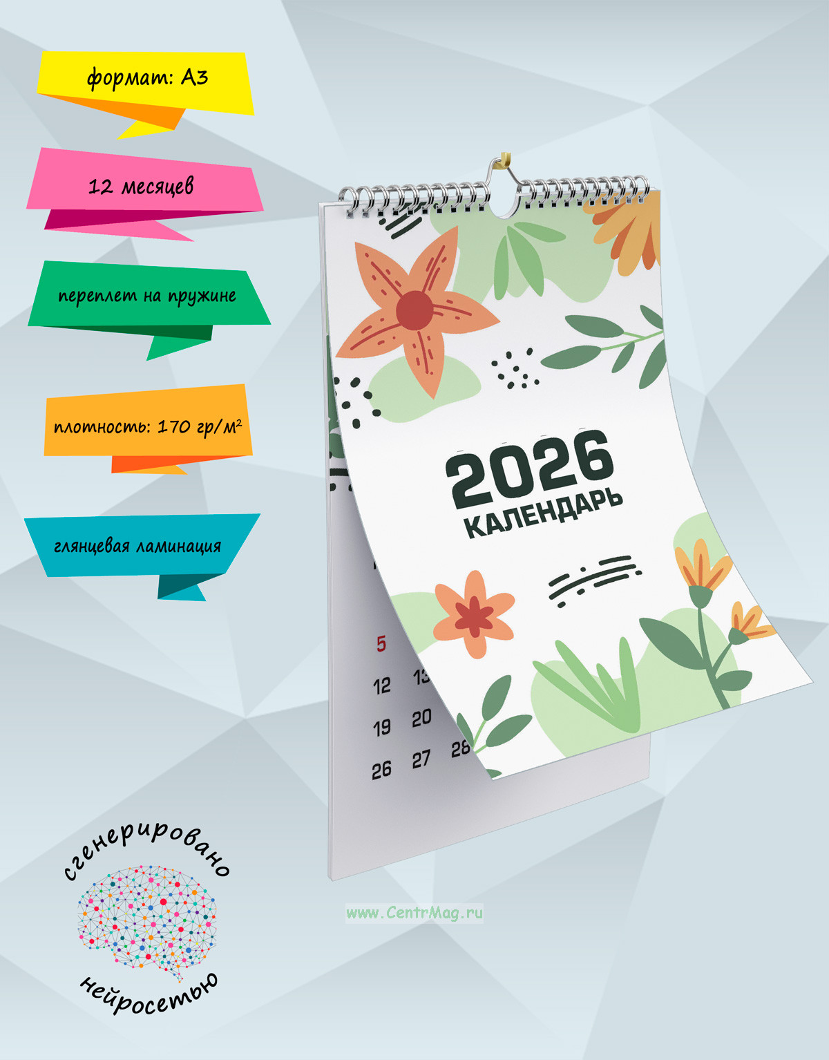 Календарь содержит простые и эстетичеки красивые изображения цветов, сгенерированные с помощью нейросети. Календарь будет отличным подарком для ваших родных, друзей, знакомых, коллег или даже для себя.