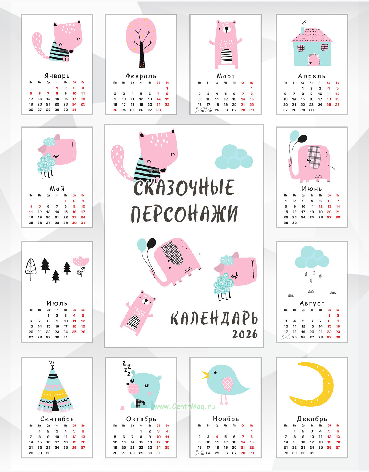 Календарь настенный, перекидной "Сказочные персонажи" на 2026 год