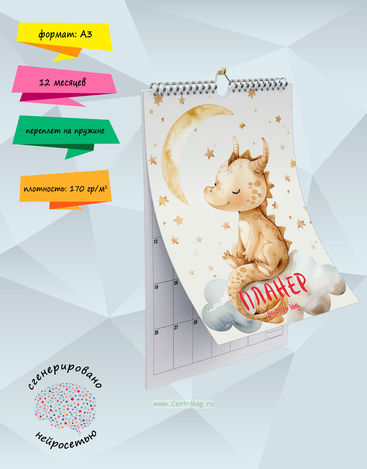 Календарь-планер станет отличным помощником в делах, специальные поля в датах позволят записать важную информацию и не забыть ее. Изображения сгенерированы с помощью нейросети. Календарь будет отличным подарком для ваших родных, друзей, знакомых, коллег или даже для себя.