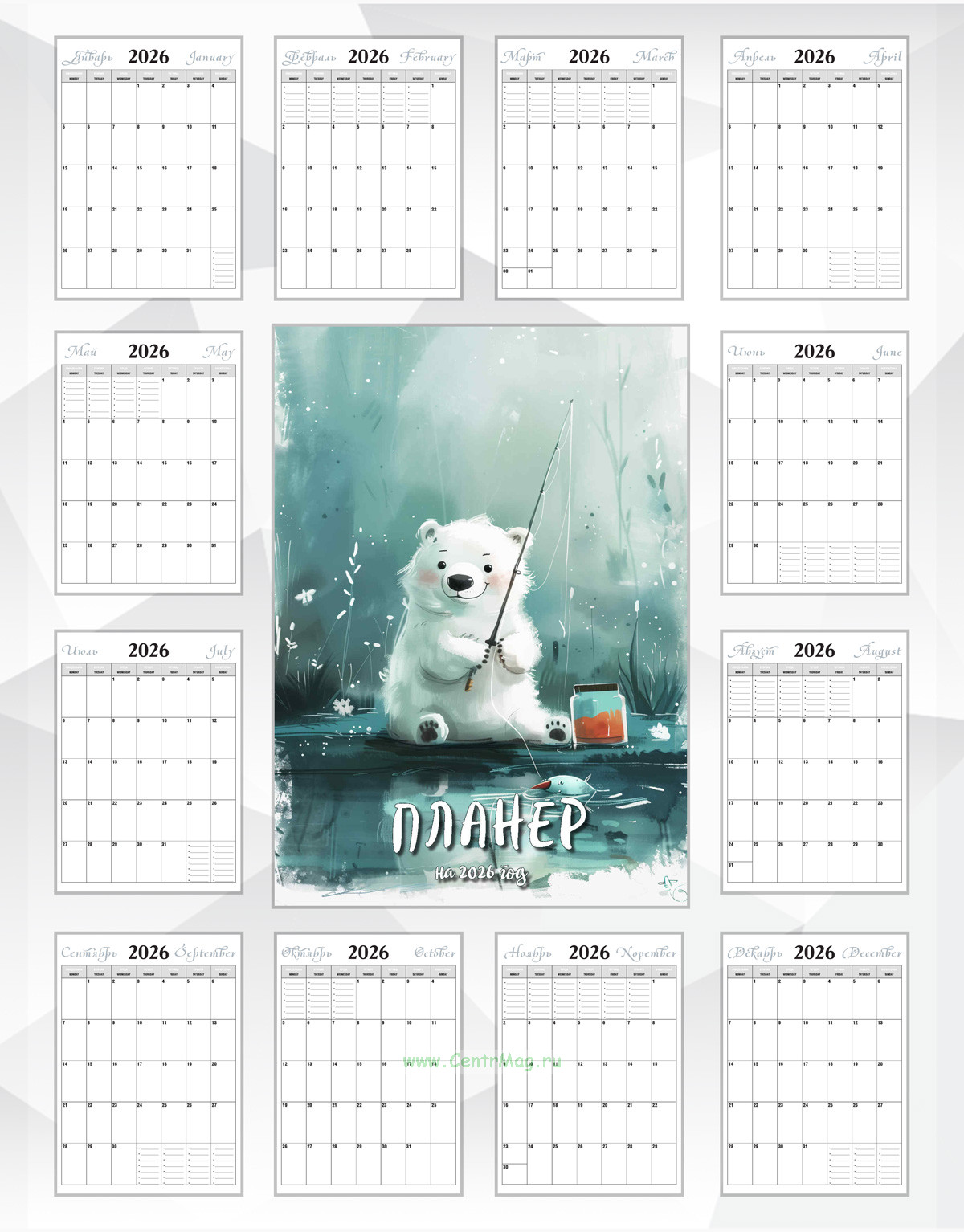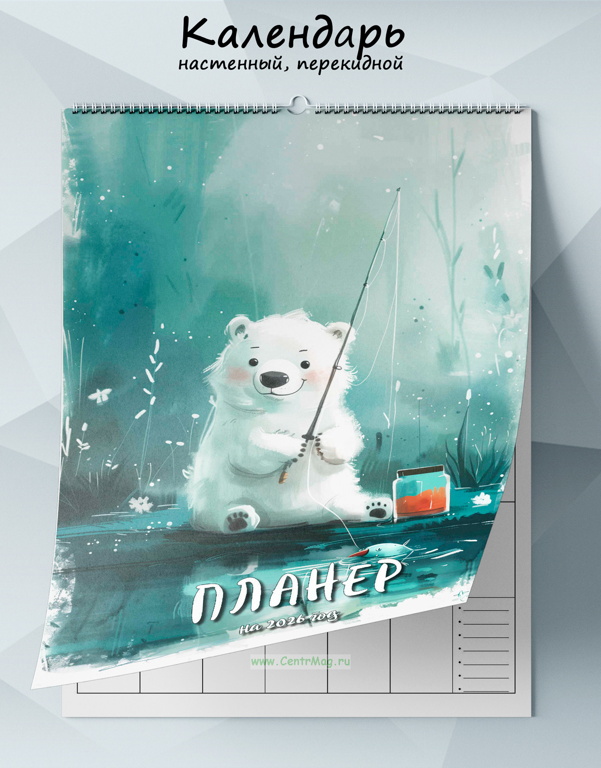 Календарь-планер настенный, перекидной "Белый медвежонок" на 2026 год