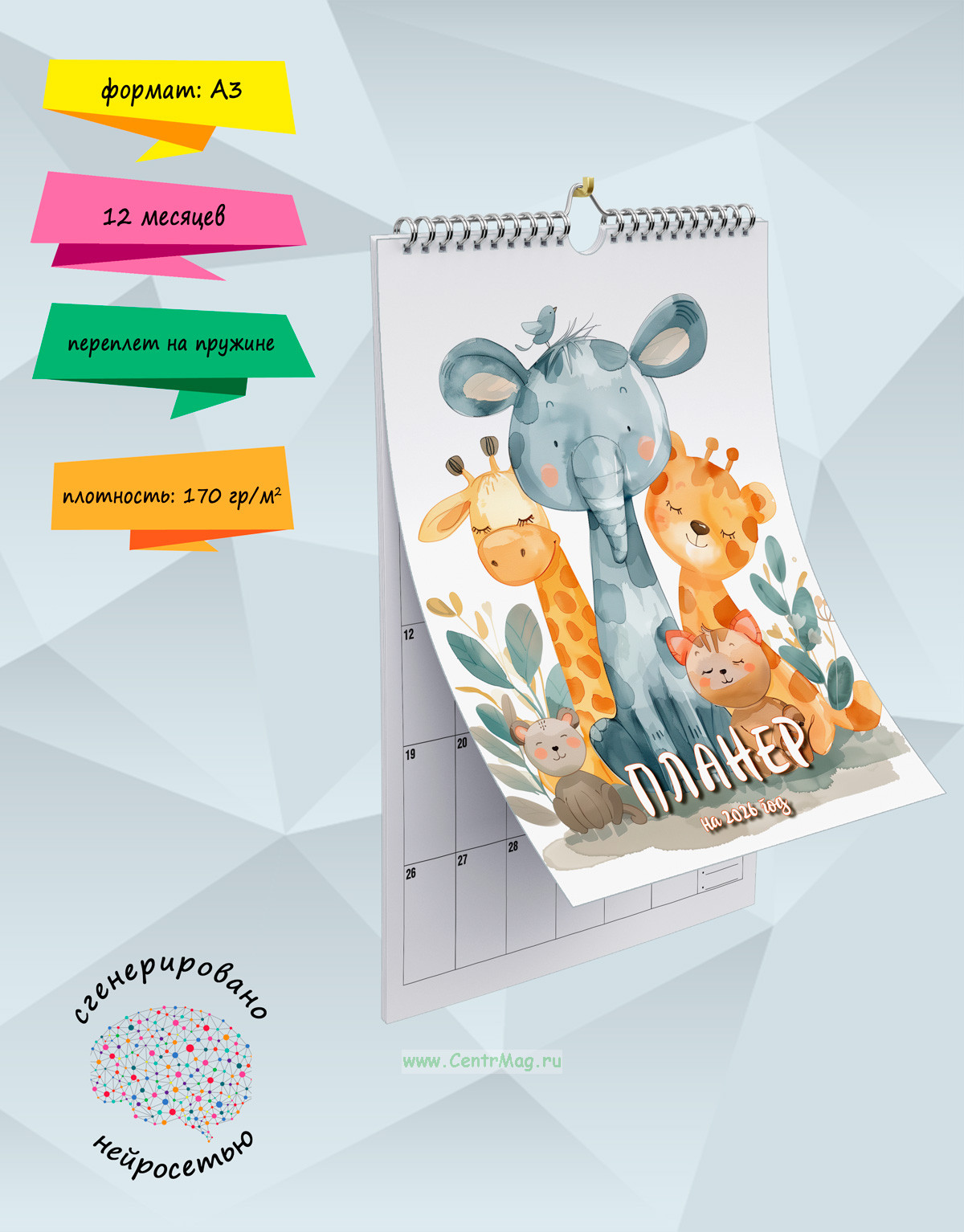 Календарь-планер станет отличным помощником в делах, специальные поля в датах позволят записать важную информацию и не забыть ее. Изображения сгенерированы с помощью нейросети. Календарь будет отличным подарком для ваших родных, друзей, знакомых, коллег или даже для себя.