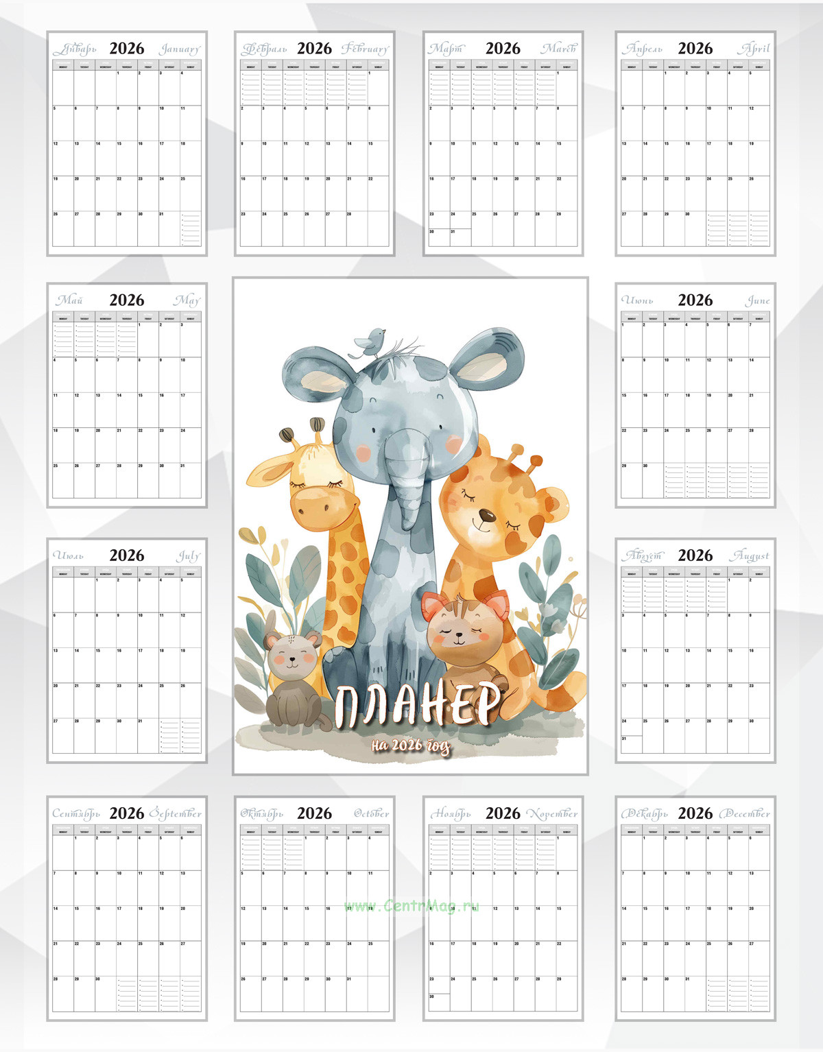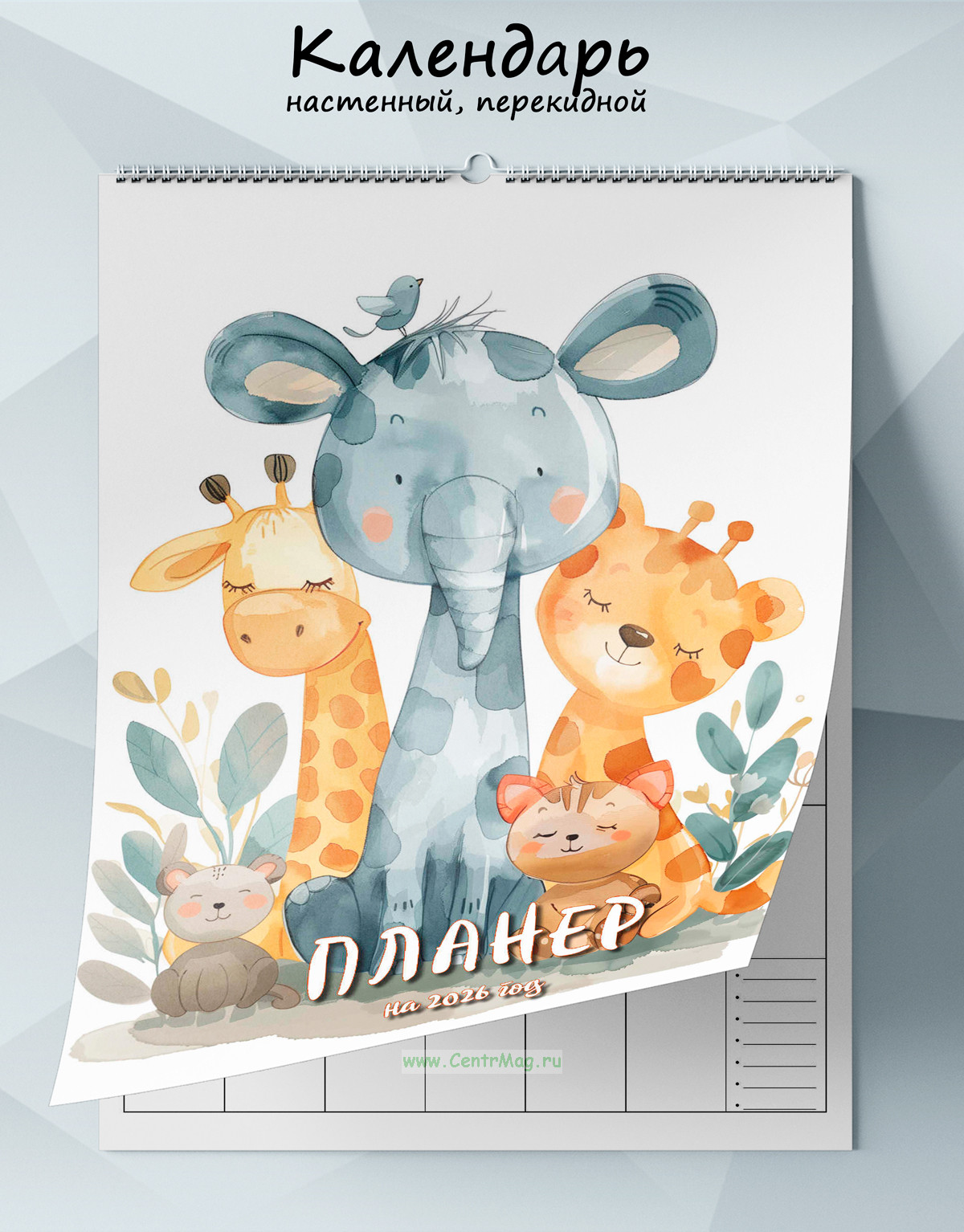 Календарь-планер настенный, перекидной "Детские зарисовки. Звери" на 2026 год