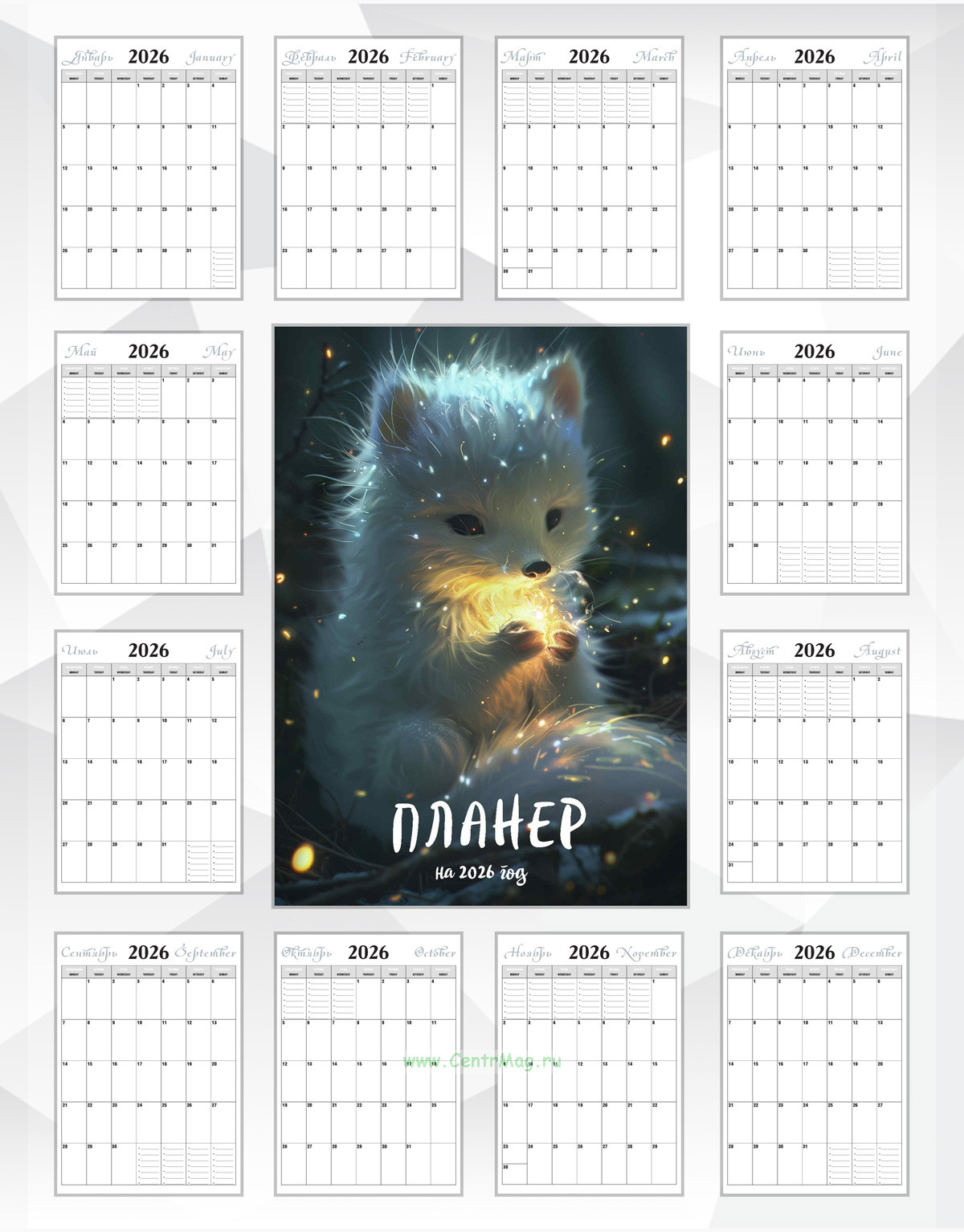 Календарь-планер настенный, перекидной "Лисёнок" на 2026 год