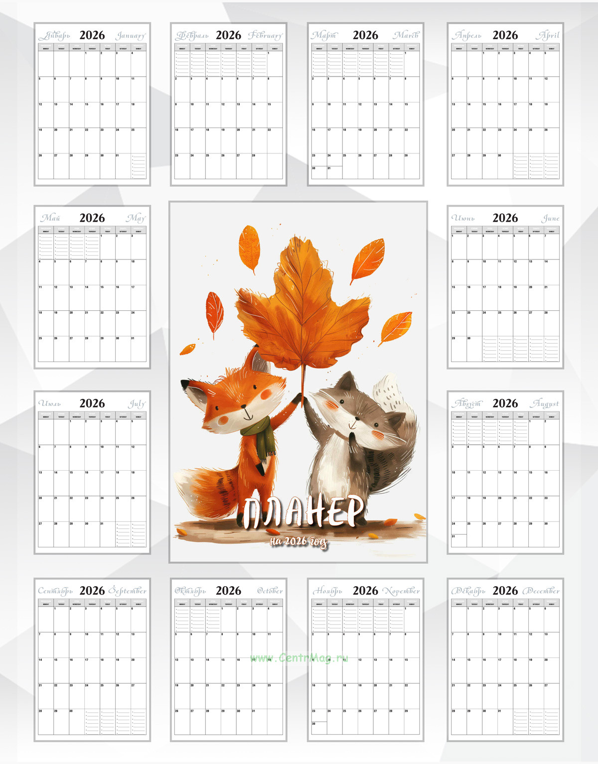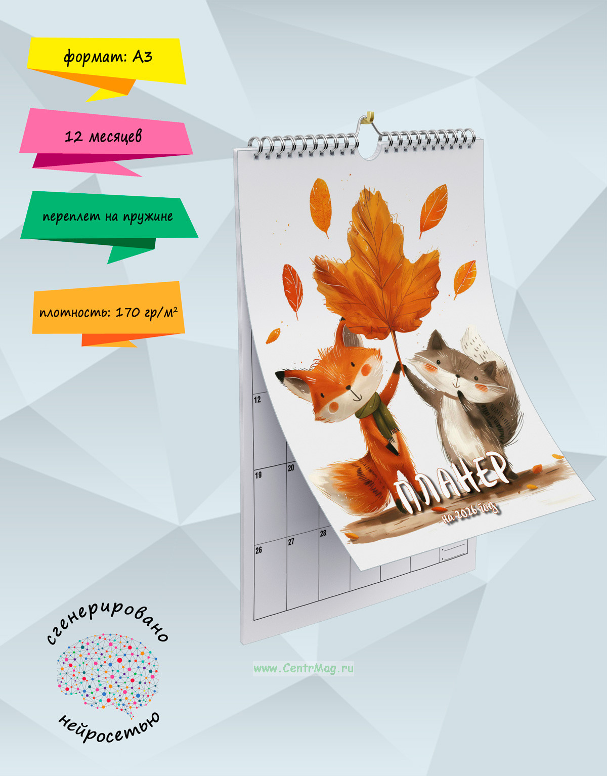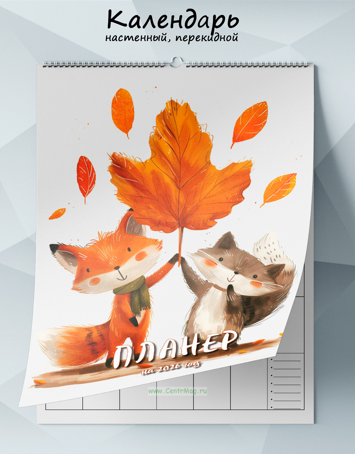 Календарь-планер настенный, перекидной "Лисичка и котик" на 2026 год