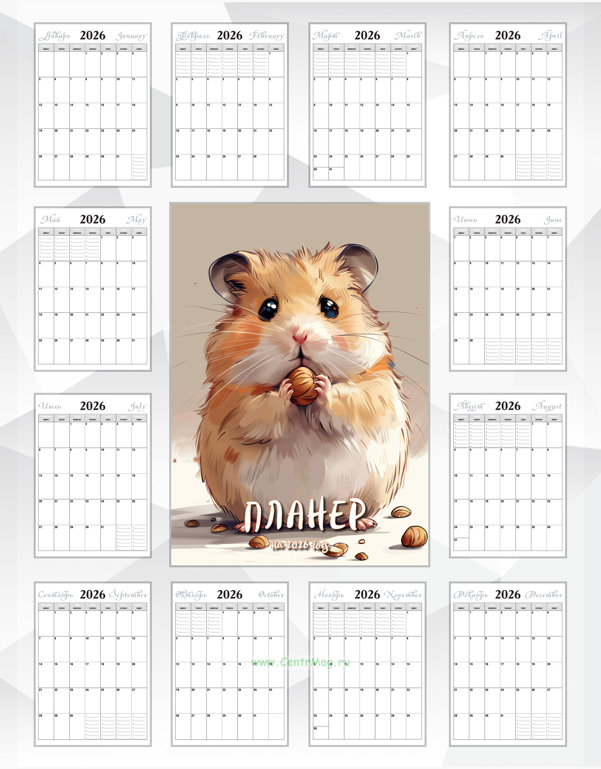 Календарь-планер настенный, перекидной "Хомяк" на 2026 год