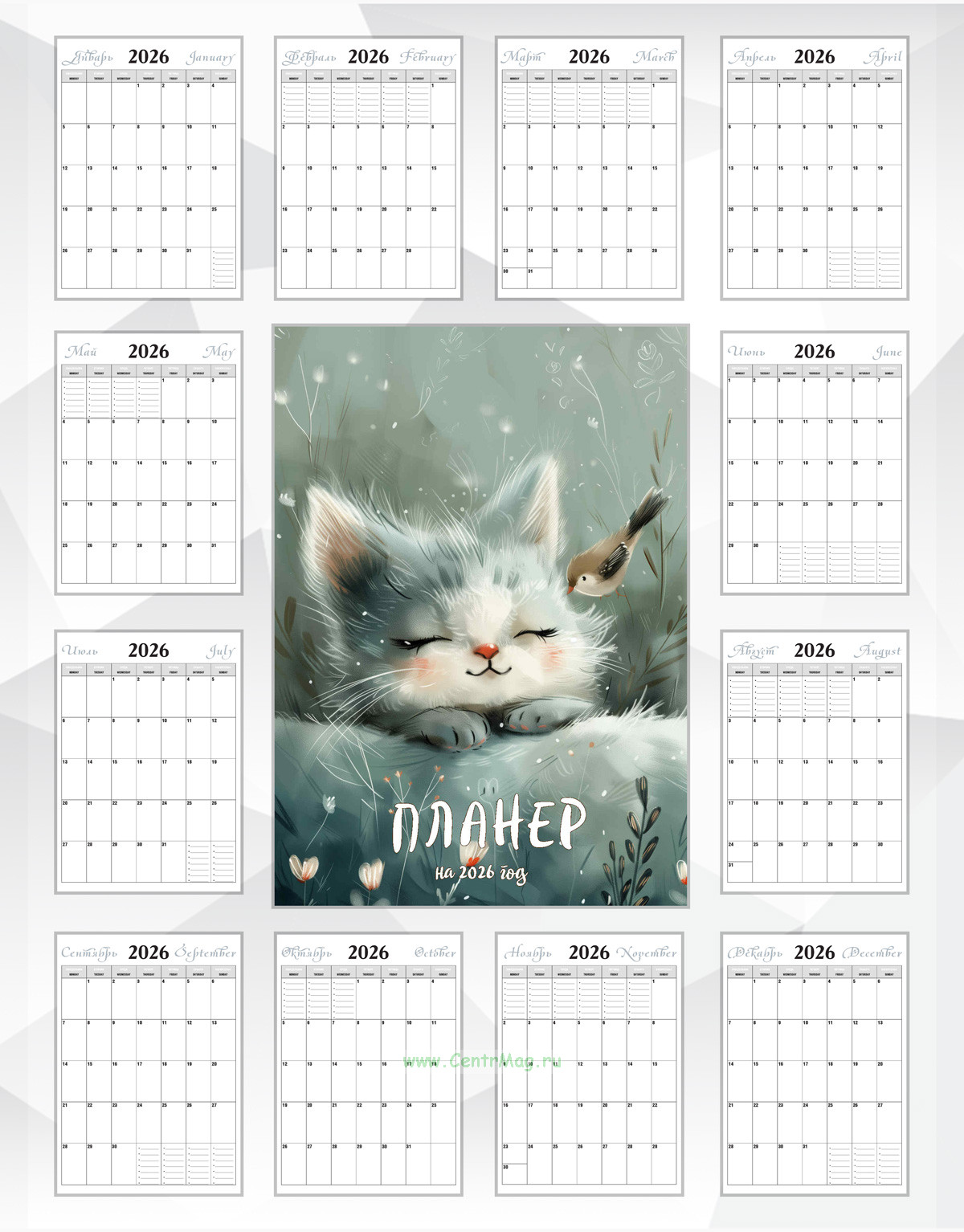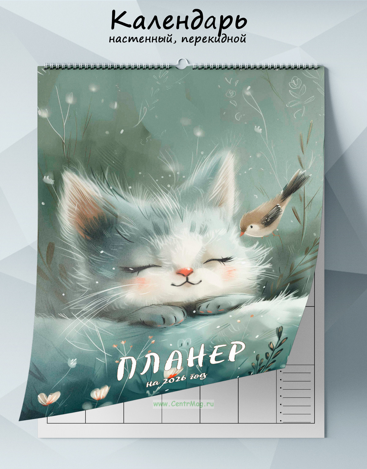 Календарь-планер настенный, перекидной "Кот и птичка" на 2026 год