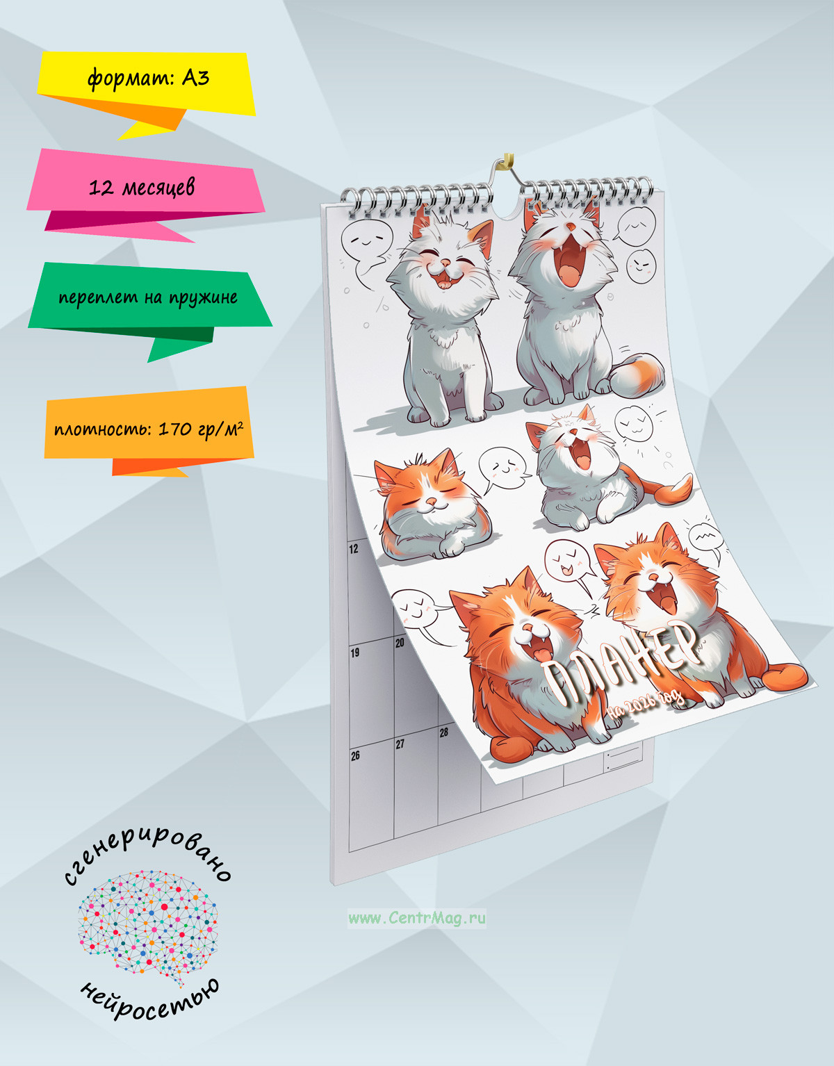 Календарь-планер станет отличным помощником в делах, специальные поля в датах позволят записать важную информацию и не забыть ее. Изображения сгенерированы с помощью нейросети. Календарь будет отличным подарком для ваших родных, друзей, знакомых, коллег или даже для себя.