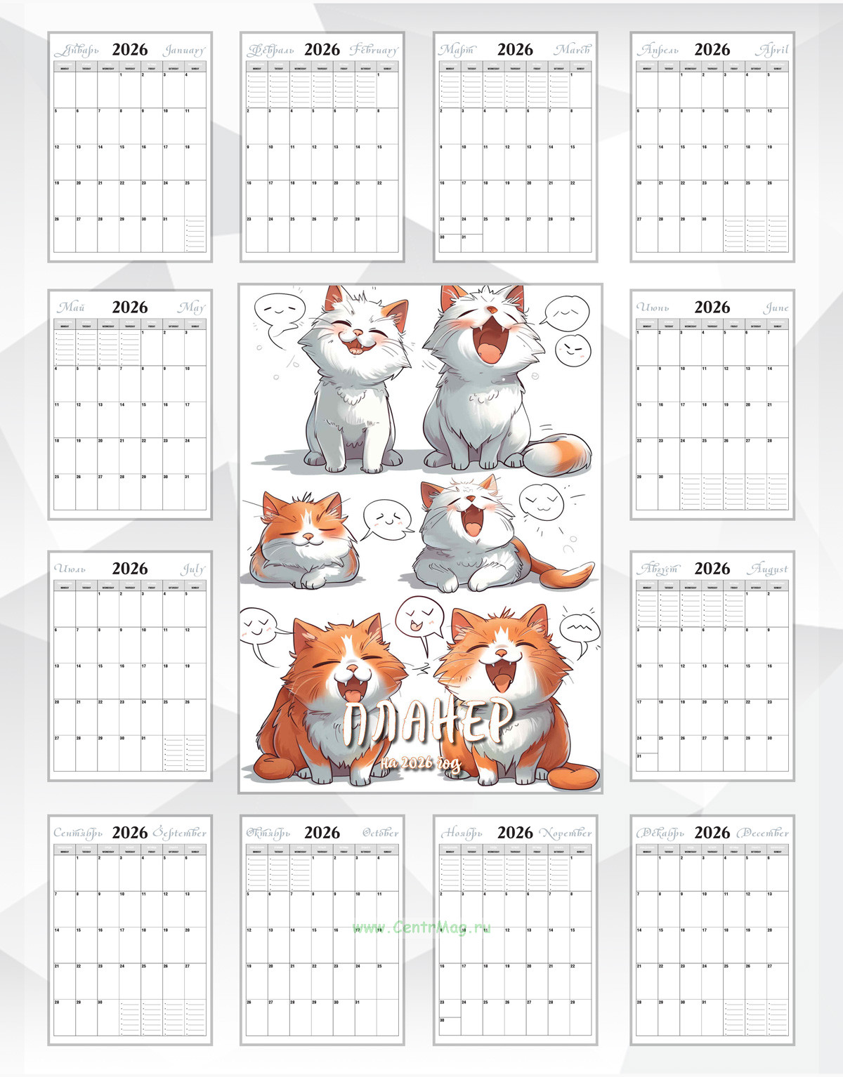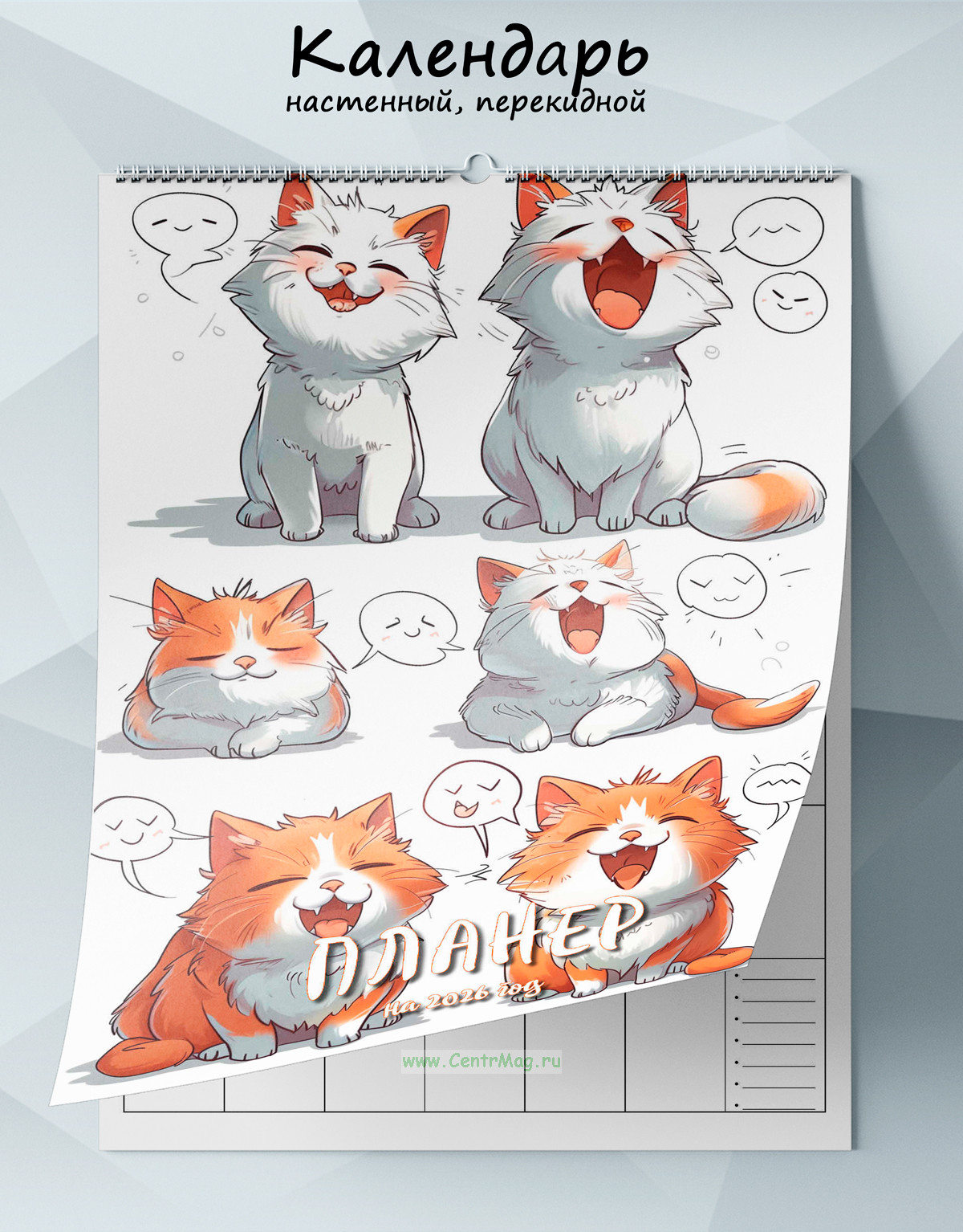 Календарь-планер настенный, перекидной "Котики" на 2026 год