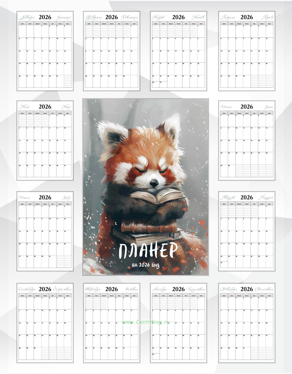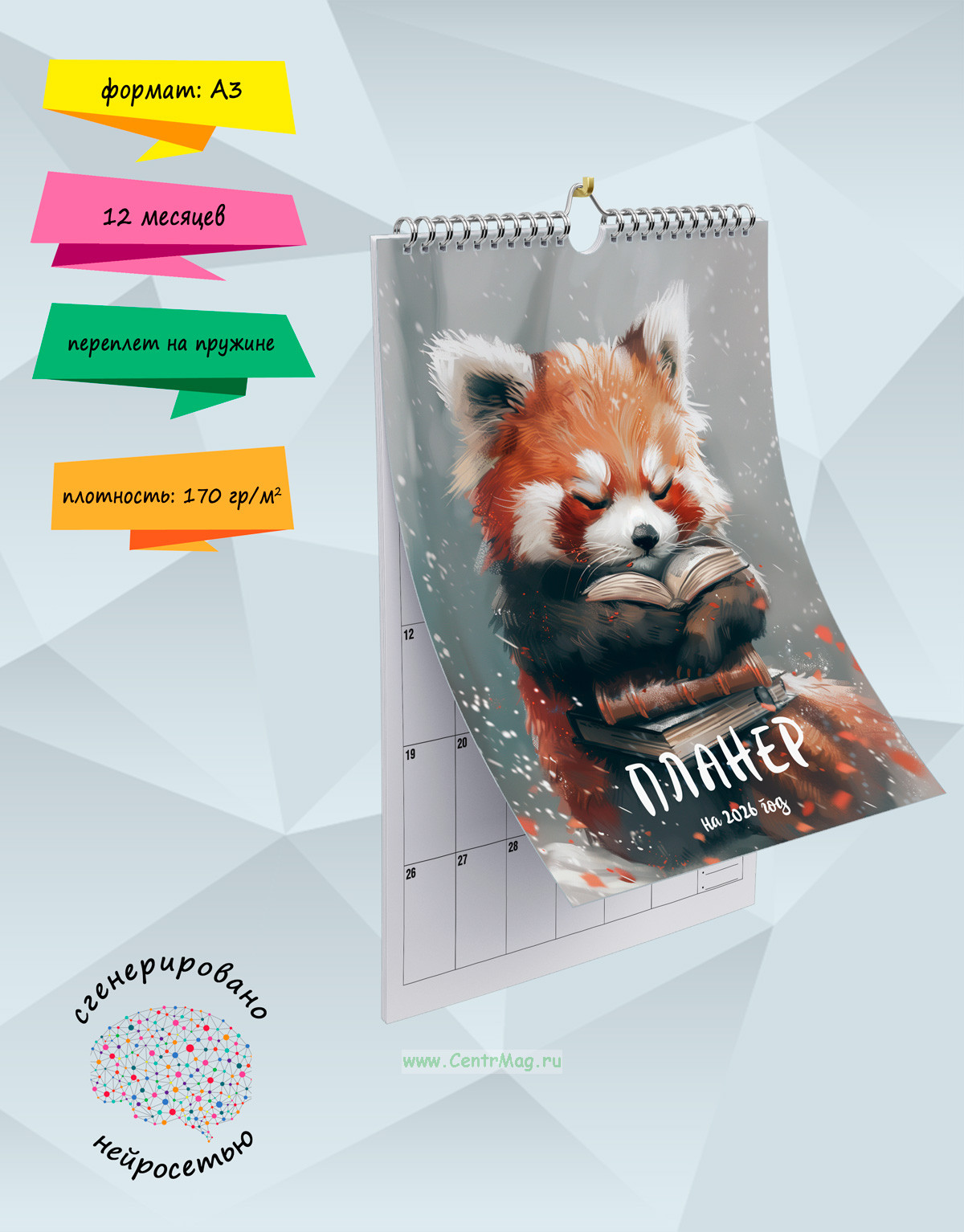 Календарь-планер настенный, перекидной "Красная панда" на 2026 год