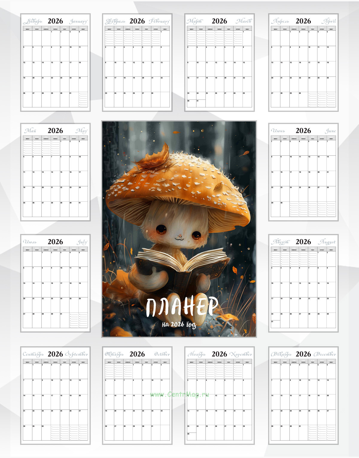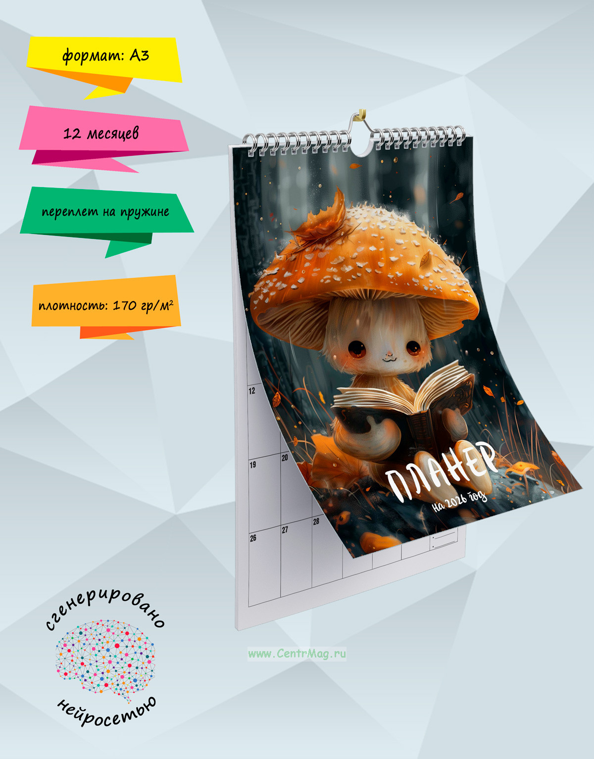 Календарь-планер настенный, перекидной "Грибочек" на 2026 год