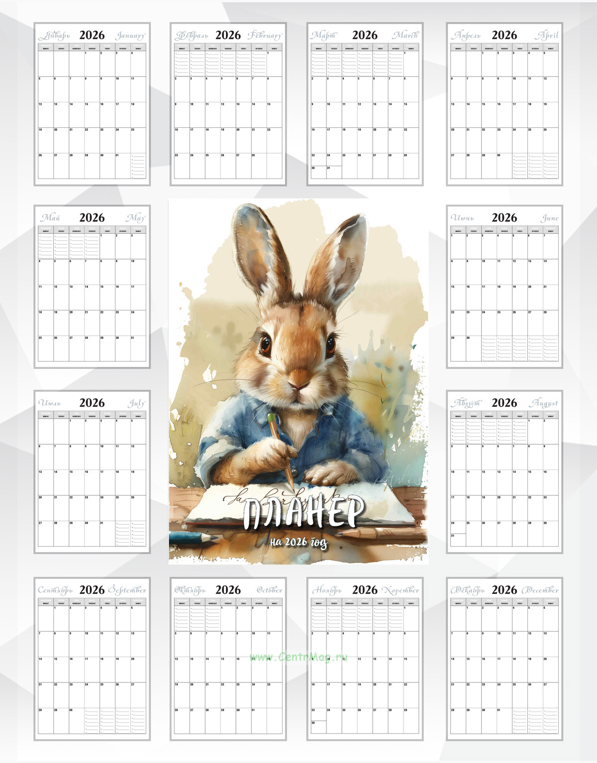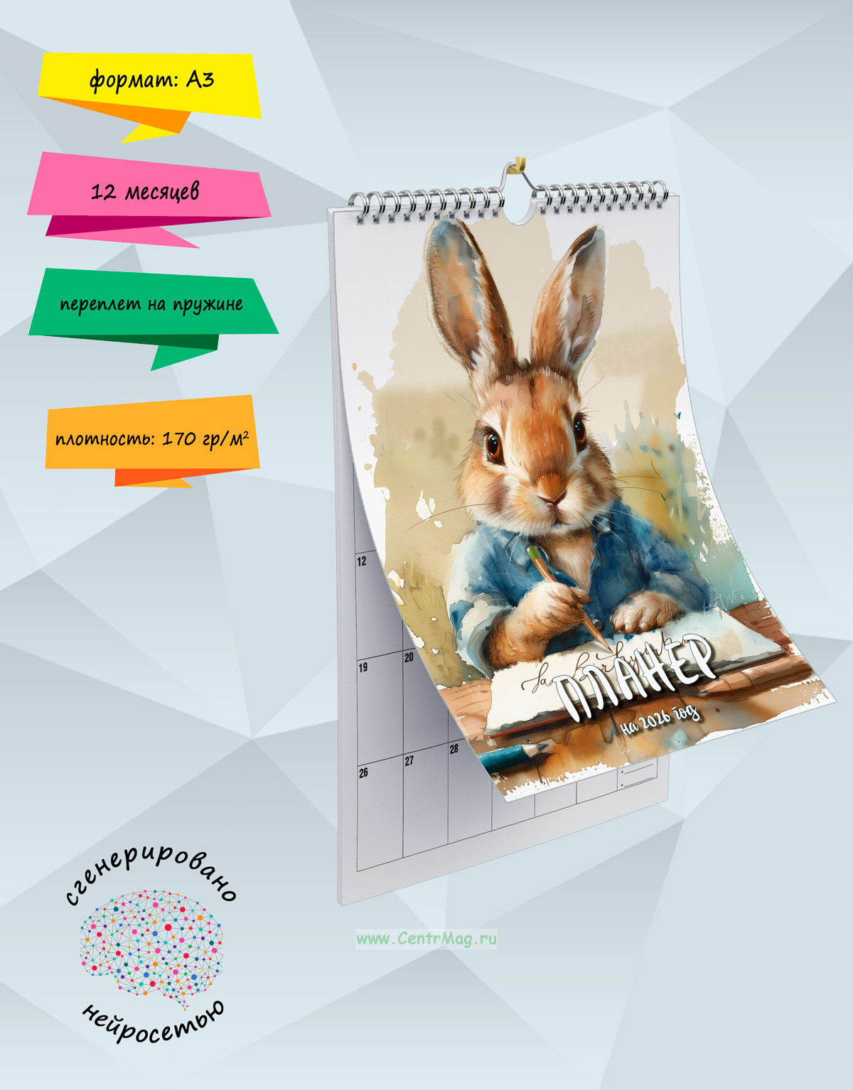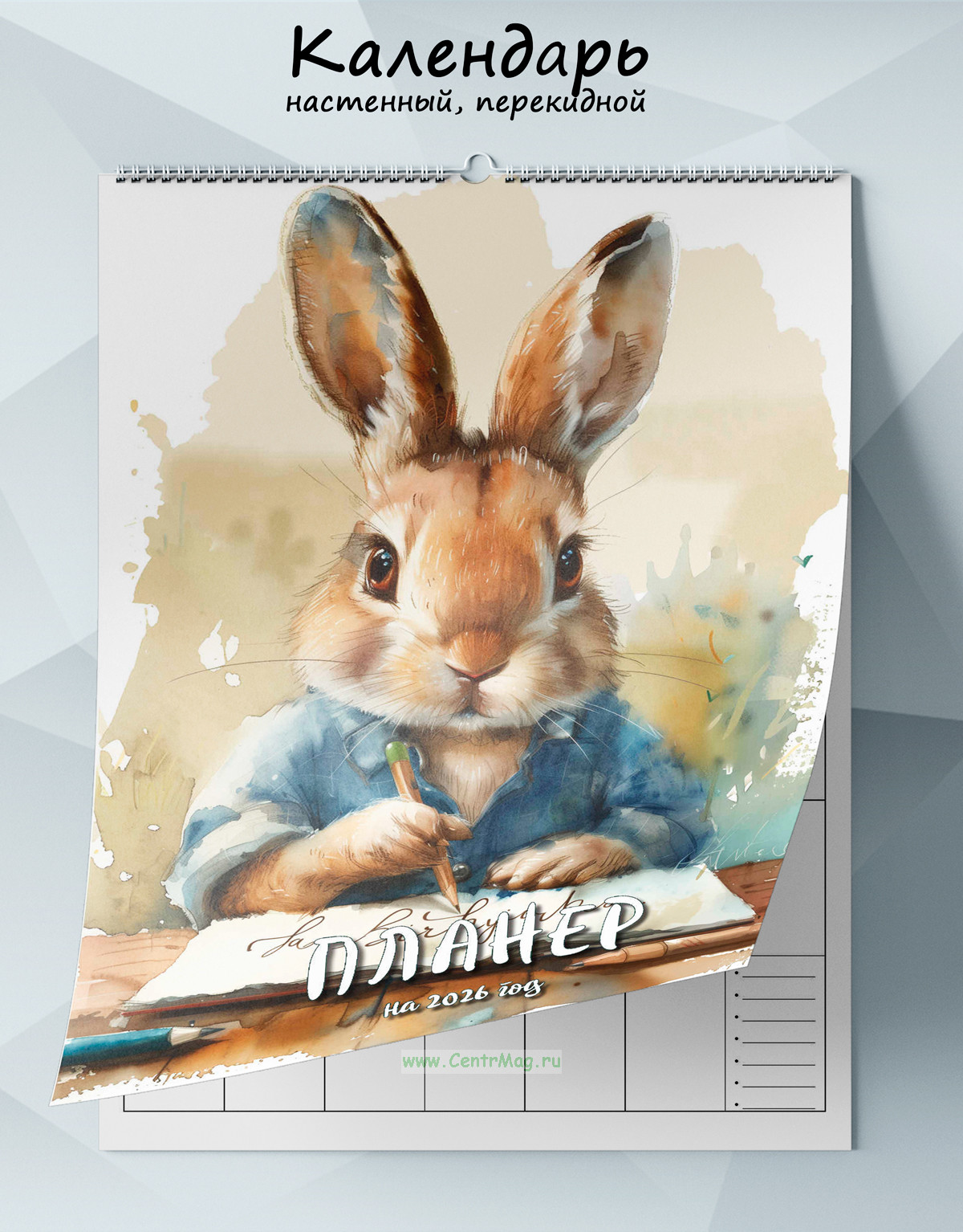 Календарь-планер настенный, перекидной "Кролик за партой" на 2026 год