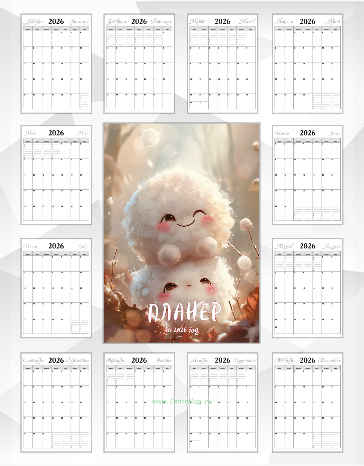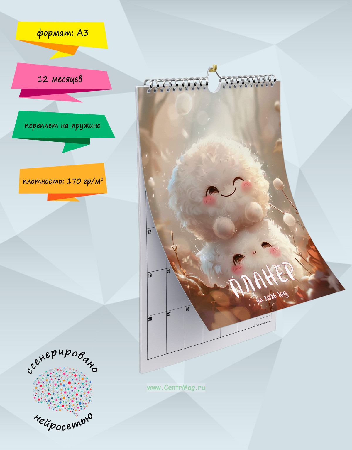 Календарь-планер настенный, перекидной "Пушинки" на 2026 год