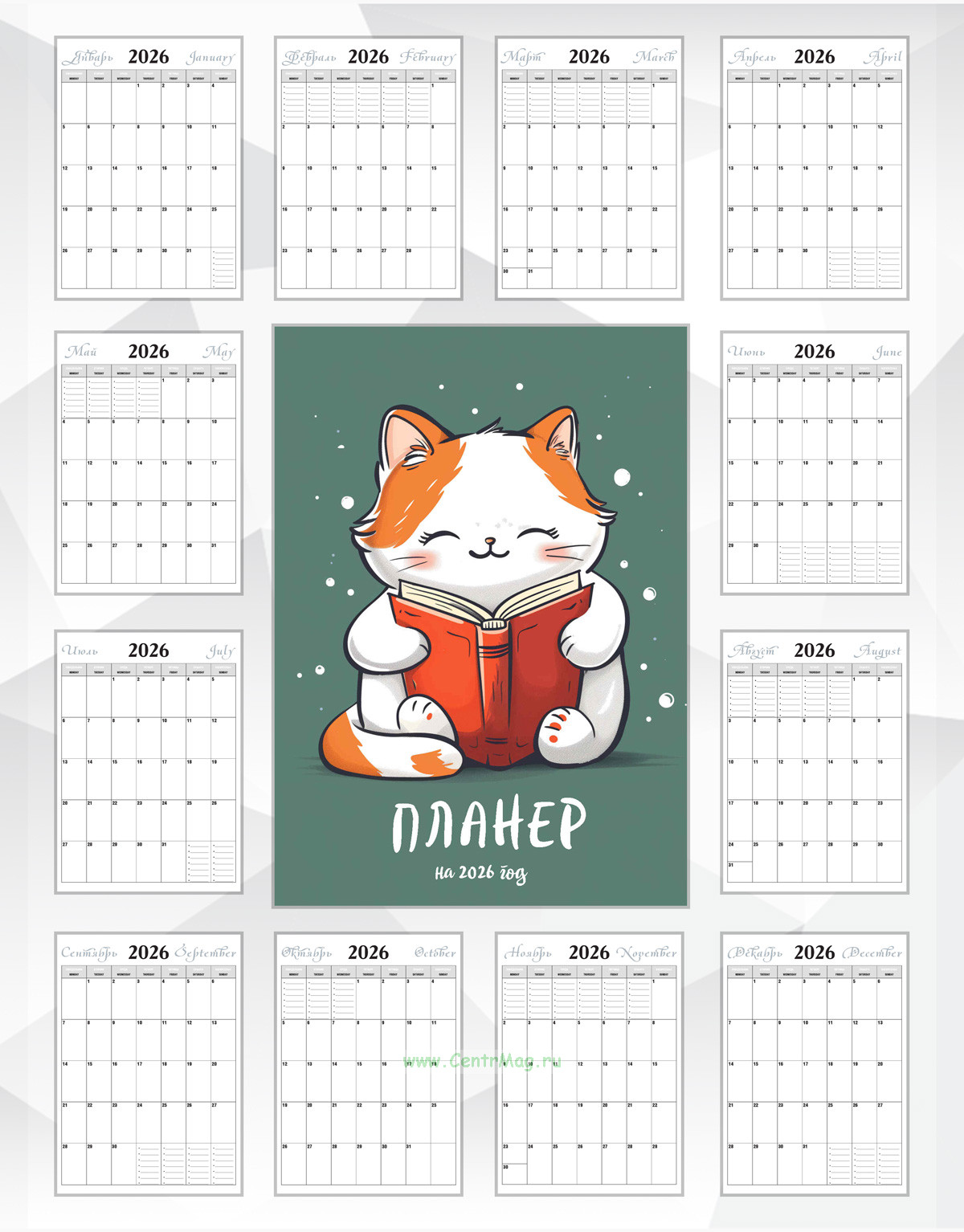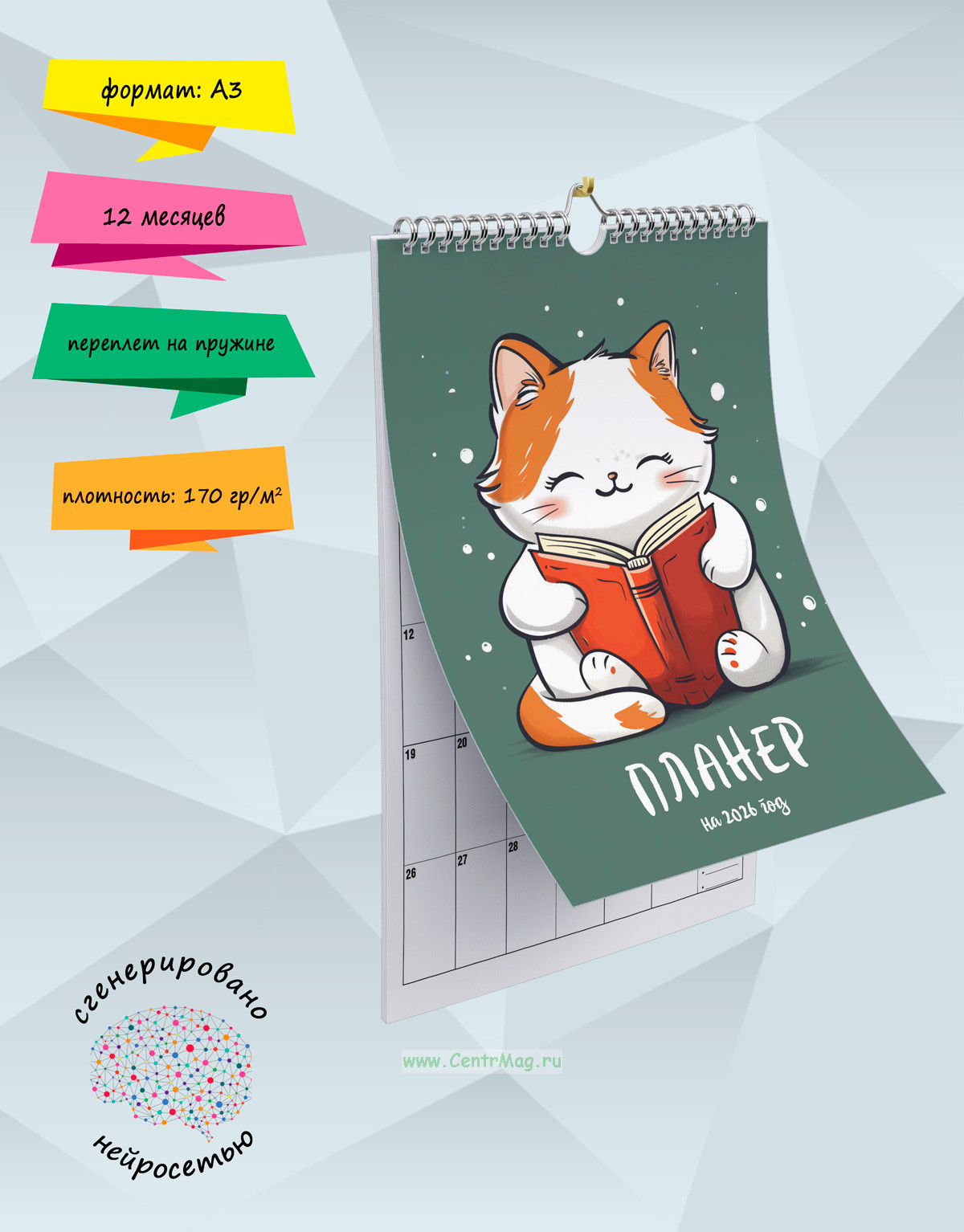 Календарь-планер настенный, перекидной "Пушистый читатель" на 2026 год