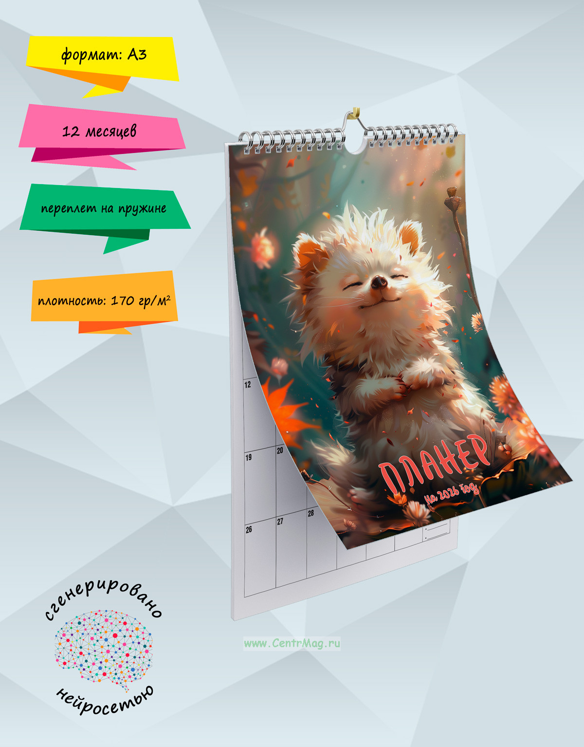 Календарь-планер станет отличным помощником в делах, специальные поля в датах позволят записать важную информацию и не забыть ее. Изображения сгенерированы с помощью нейросети. Календарь будет отличным подарком для ваших родных, друзей, знакомых, коллег или даже для себя.