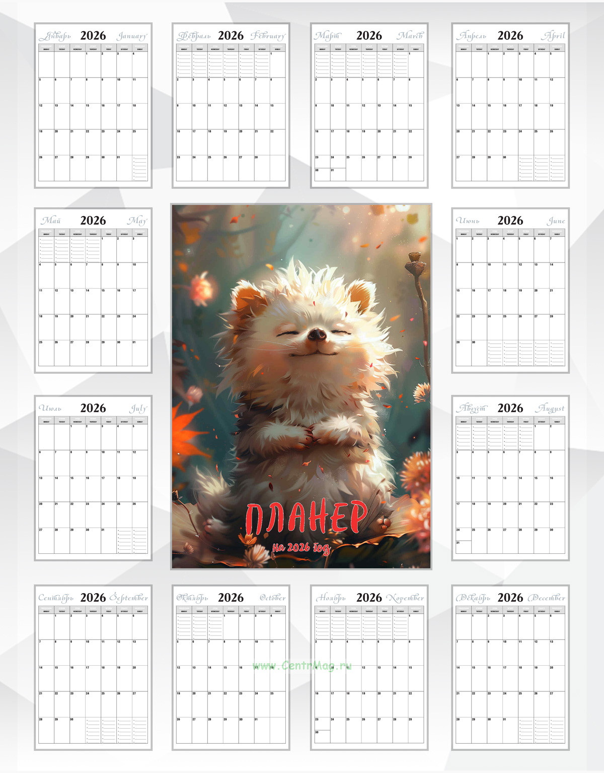 Календарь-планер настенный, перекидной "Ёжик" на 2026 год
