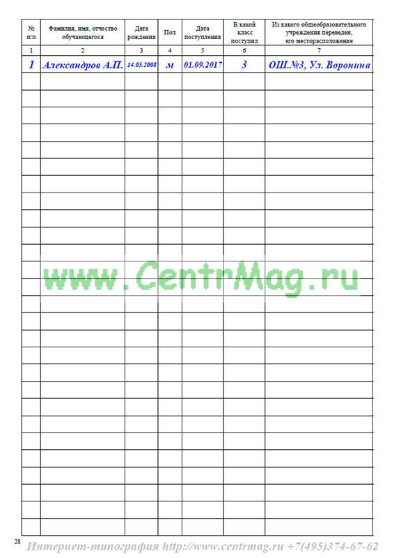3. В книгу записываются все обучающиеся общеобразовательного учреждения. Ежегодно список пополняется записью обучающихся нового приема.