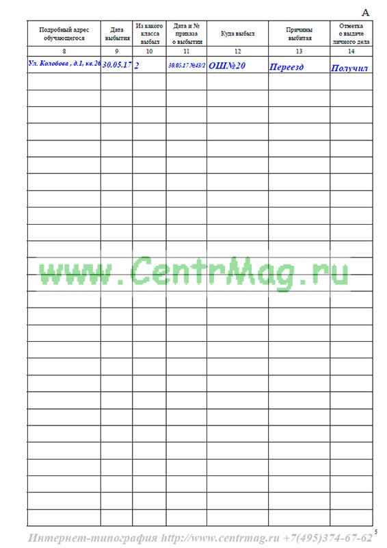 Например, № 5/К означает, что обучающийся занесен в алфавитную книгу под № 5 на букву "К". С особой тщательностью надо вести записи о выбытии обучающихся из общеобразовательного учреждения.