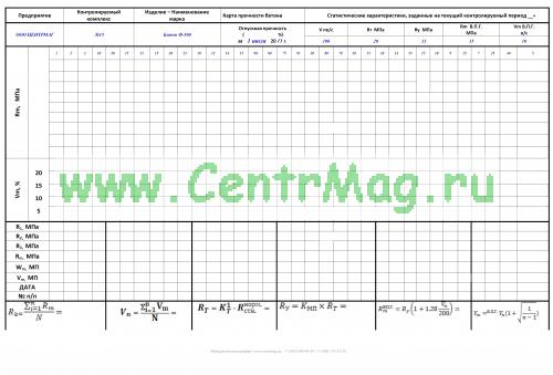 На основании данных карты прочности бетона ведется журнал контроля прочности бетона.