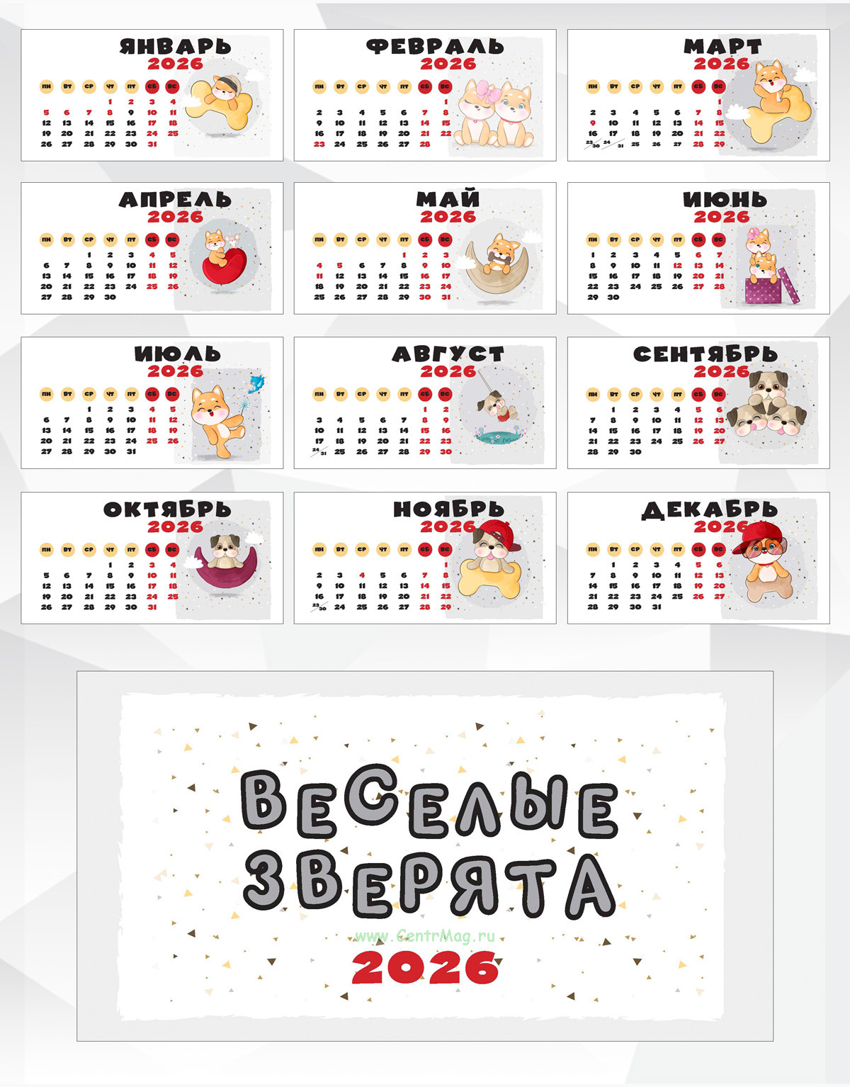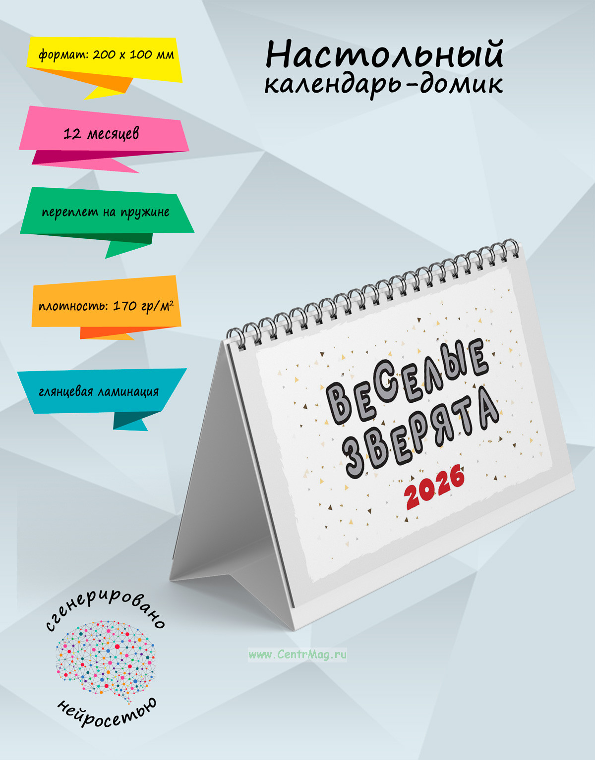 Настольный календарь-домик "Веселые зверята" на 2026 год
