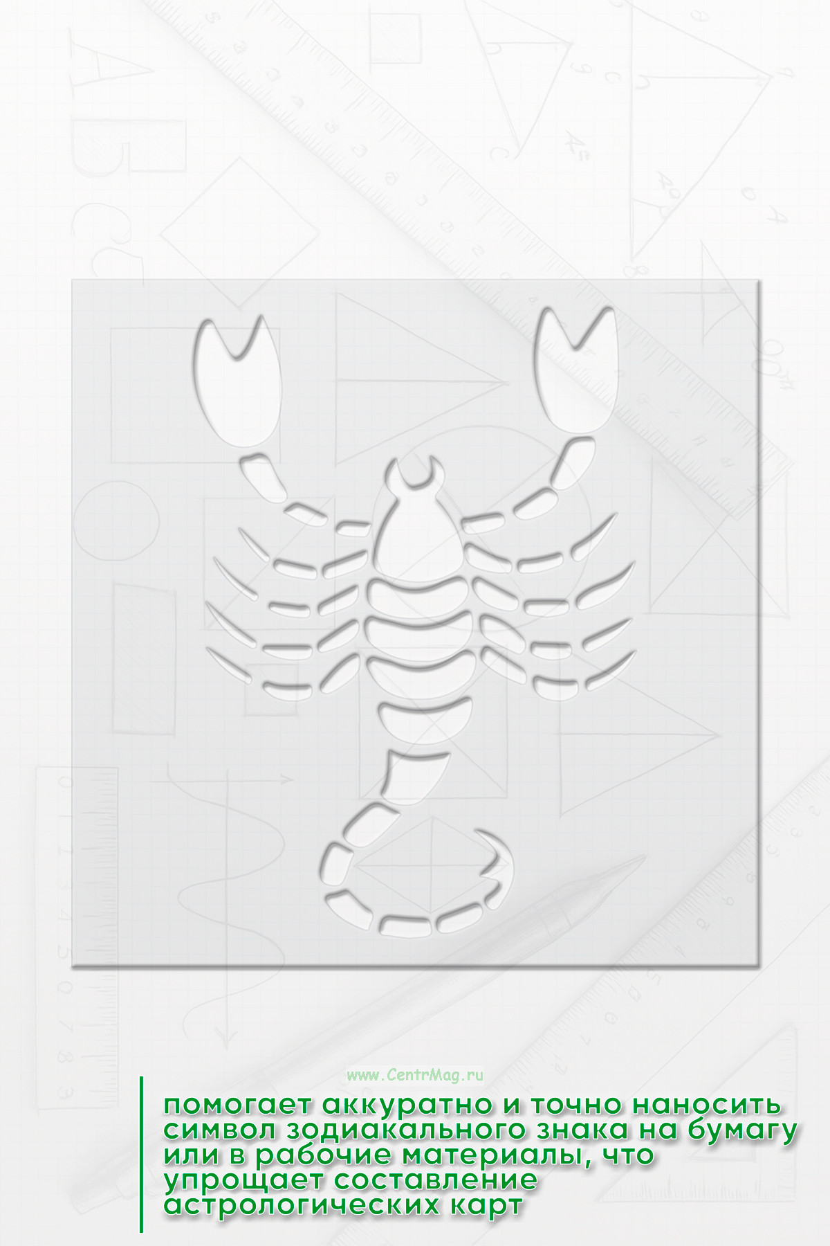 Трафарет помогает аккуратно и точно наносить символ зодиакального знака на бумагу или в рабочие материалы, что упрощает составление астрологических карт.