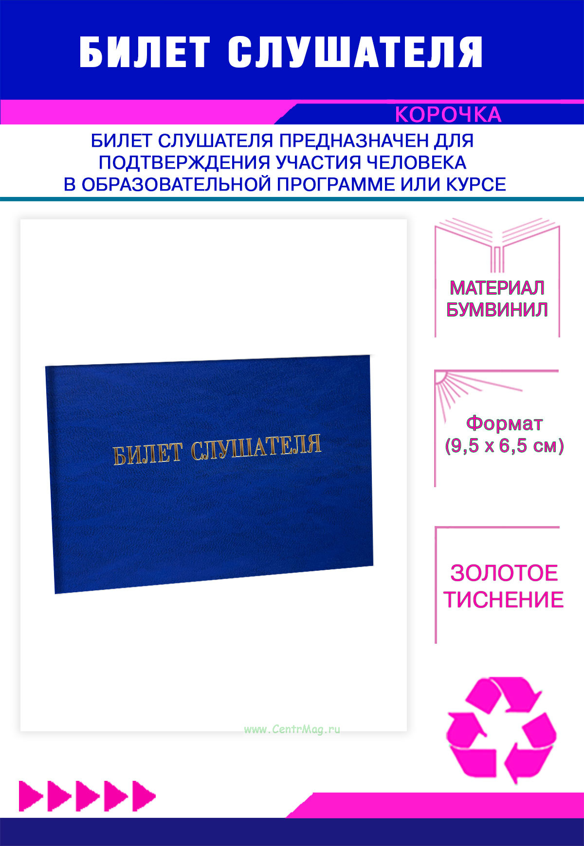 Билет слушателя, синий мрамор, бумвинил