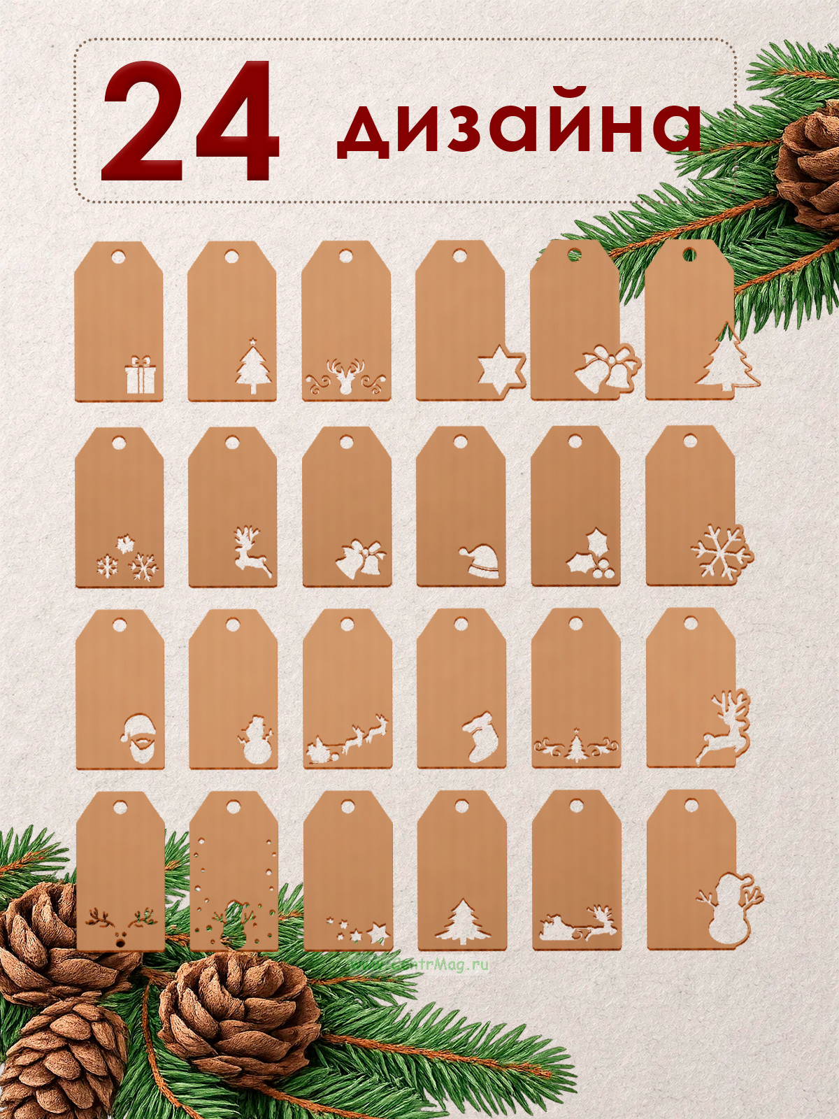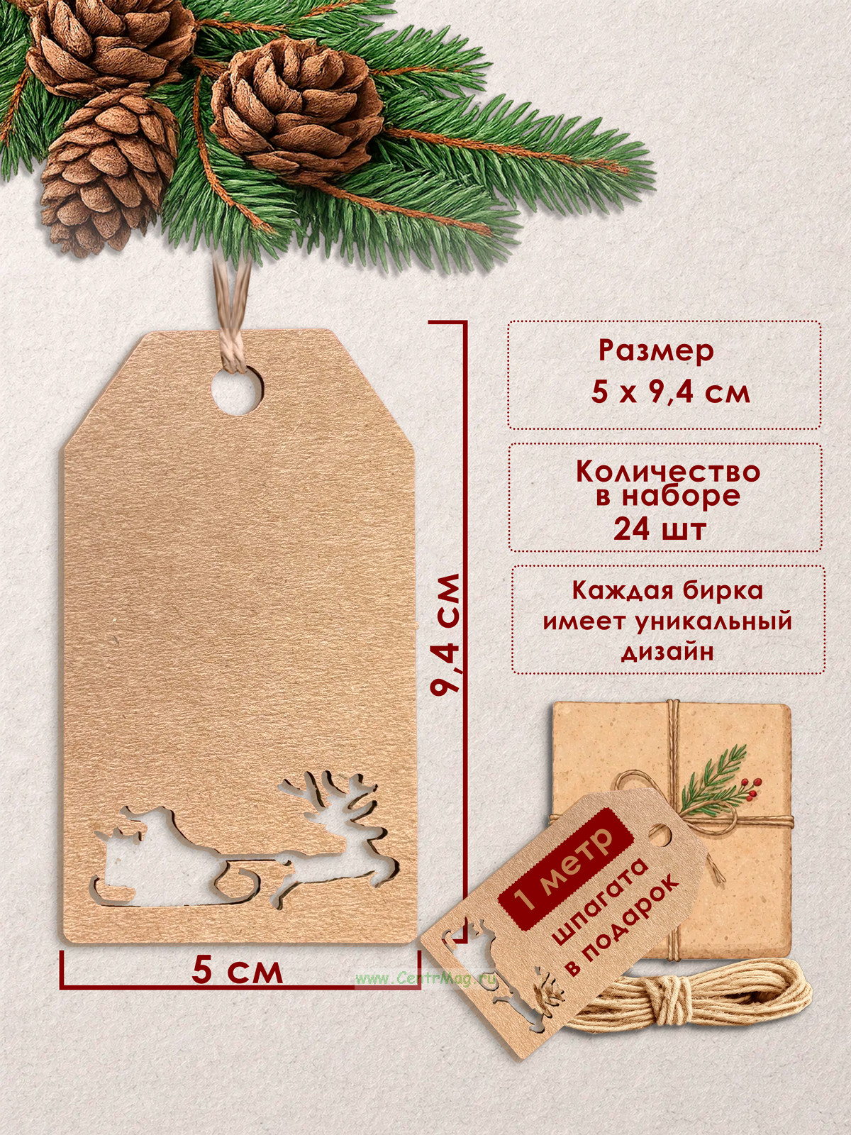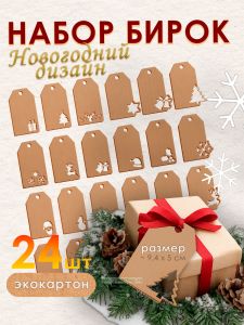 Набор новогодних бирок из экокартона для оформления подарков и упаковки товаров. Подходит для коробок, пакетов, свечей, косметики, сувениров и изделий ручной работы.