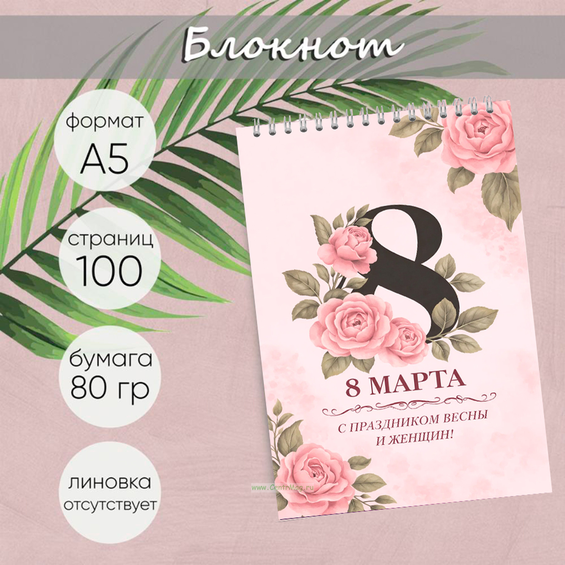 Блокнот к 8 марта с поздравлением, А5