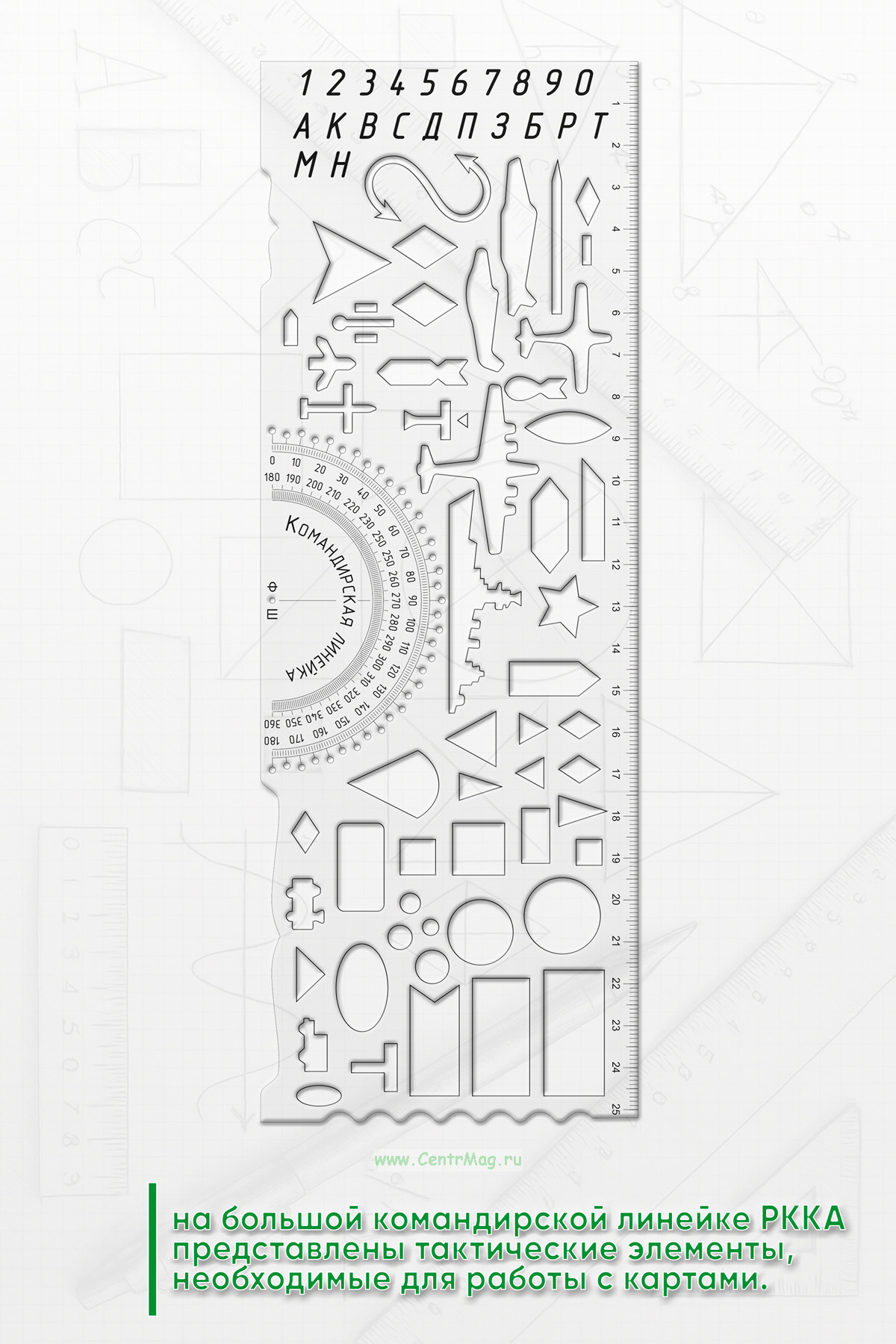 На большой командирской линейке РККА представлены тактические элементы, необходимые для работы с картами.