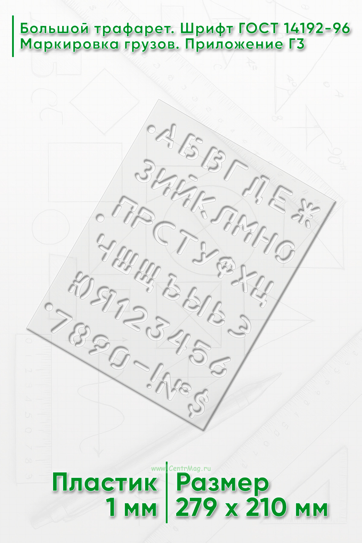 Большой трафарет. Шрифт ГОСТ 14192-96 Маркировка грузов. Приложение Г3 (рус. 279Х210 мм)