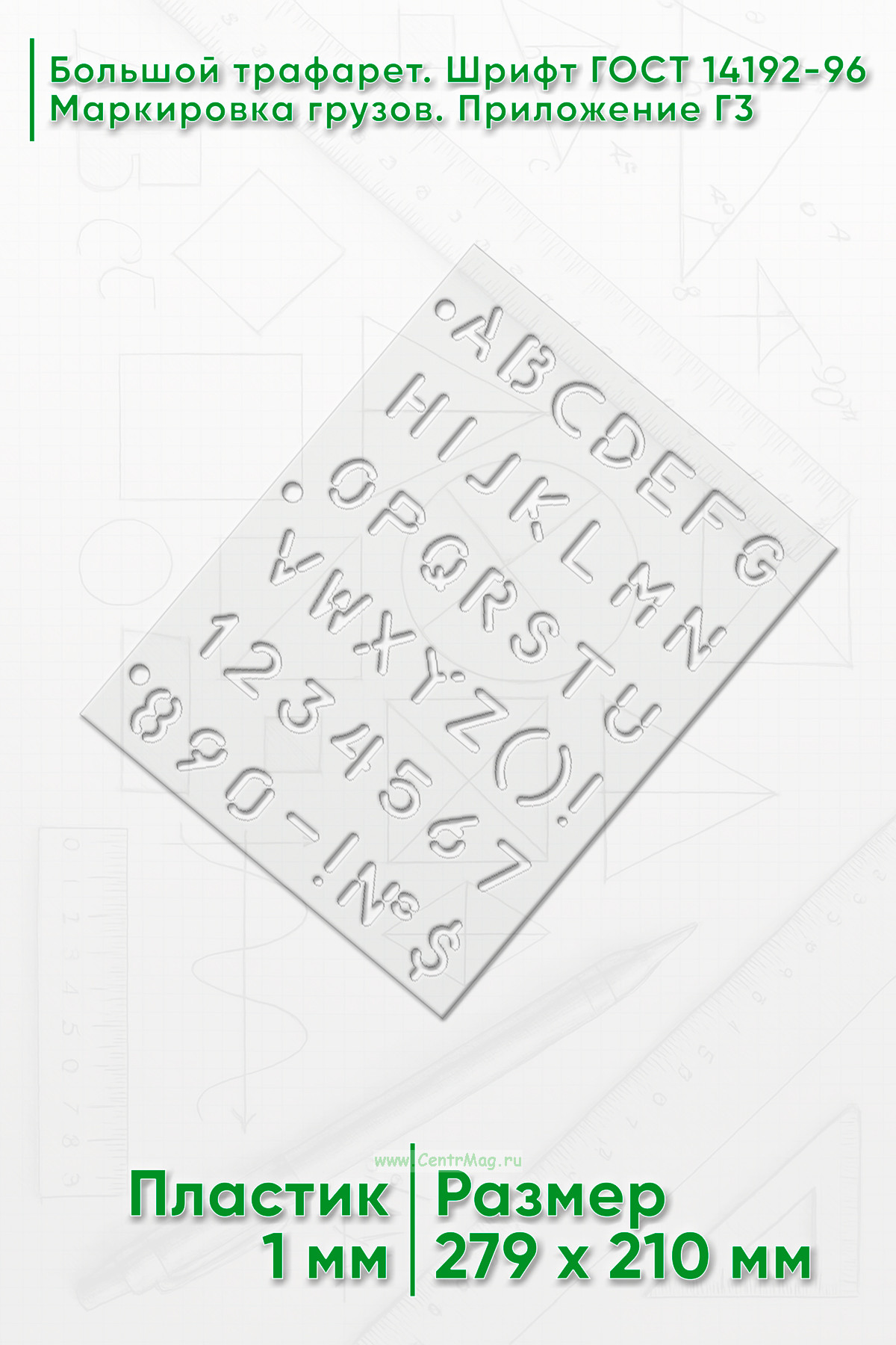 Большой трафарет. Шрифт ГОСТ 14192-96 Маркировка грузов. Приложение Г3 (рус. 279Х210 мм) (440 руб.)