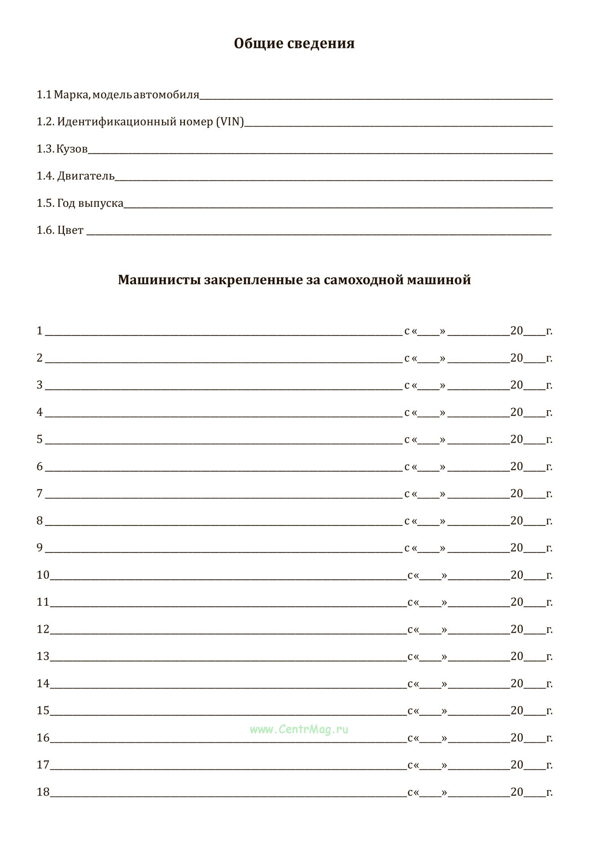 Смотрите также Бортовой журнал самоходной машины формате А5