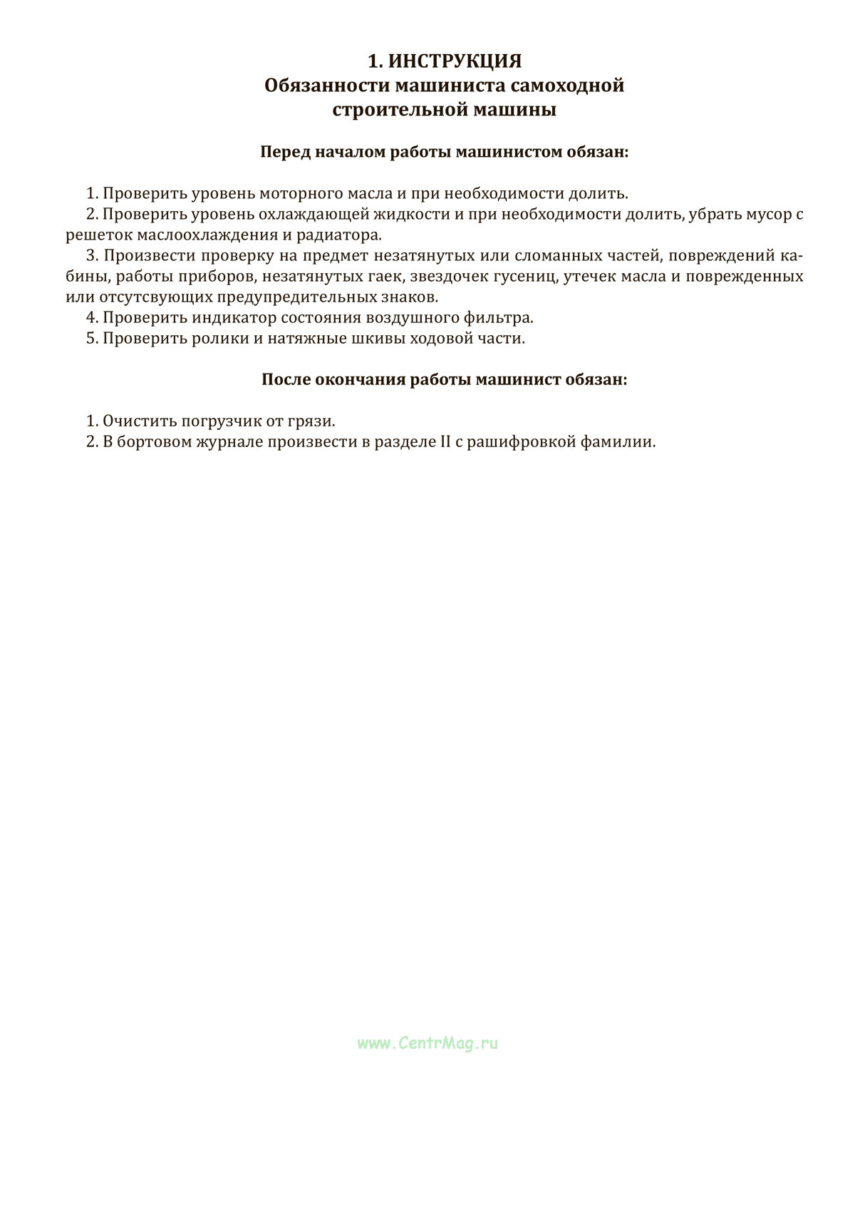 Перед началом работы машинистом обязан:
